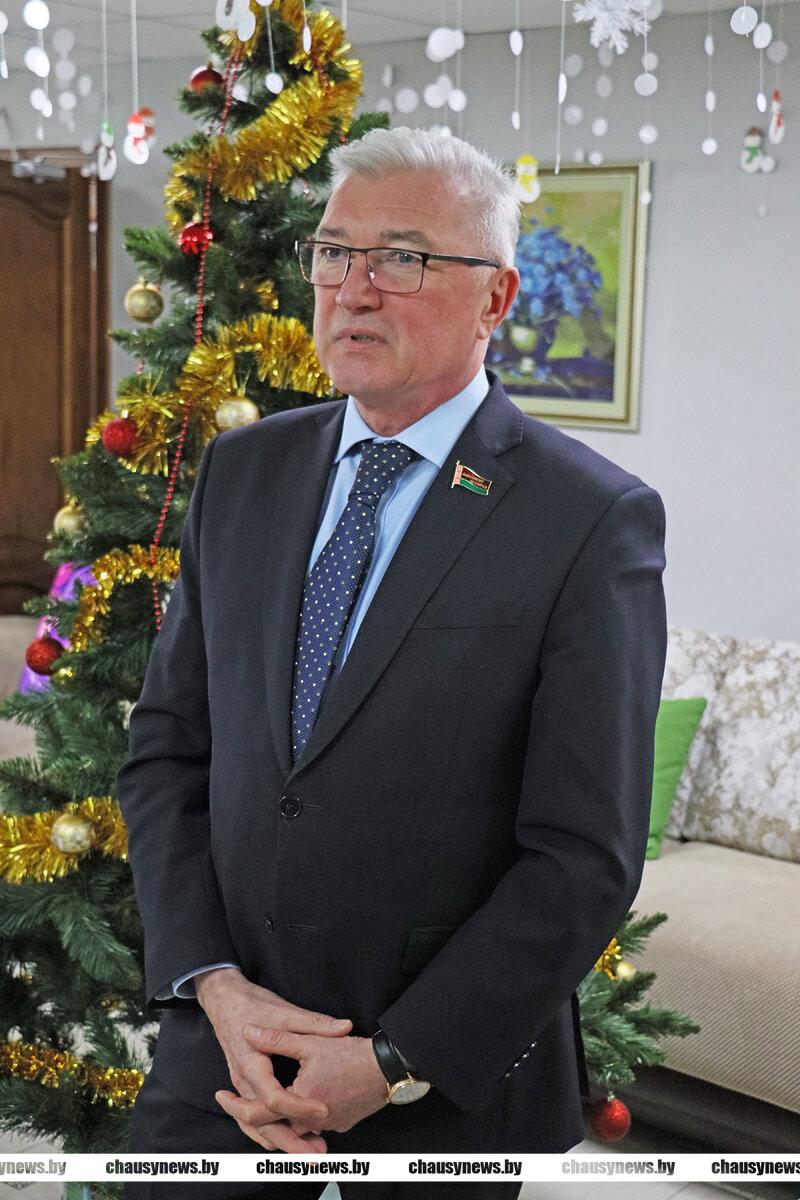 Председатель Постоянной комиссии по здравоохранению, физической культуре, семейной и молодежной политике Палаты представителей Национального собрания Республики Беларусь Валерий Малашко и председатель комитета по труду, занятости и социальной защите Могилевского облисполкома Мария Шапневская в рамках акции «От всей души» посетили сегодня проживающих дома самостоятельного проживания Чаусского социального пансионата «Росинка».
