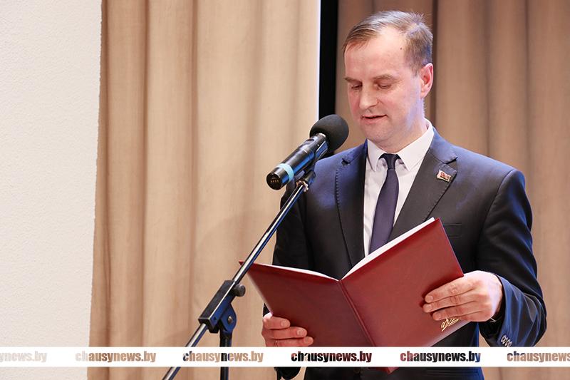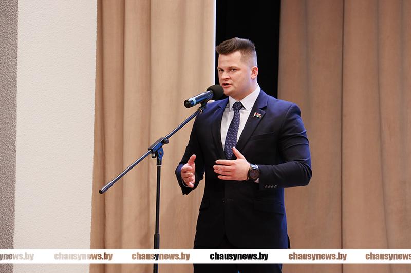 Член Совета Республики Национального собрания Республики Беларусь, первый секретарь Центрального комитета ОО «БРСМ»  Александр Лукьянов поздравил жителей Чаусского района с достигнутыми результатами.
