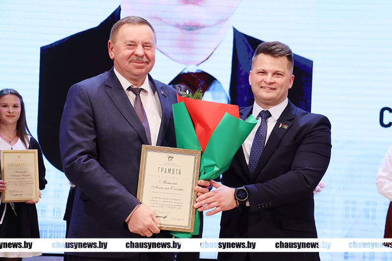 Почётная грамота ЦК ОО «БРСМ» вручена Дмитрию Акуличу, председателю Чаусского районного исполнительного комитета.