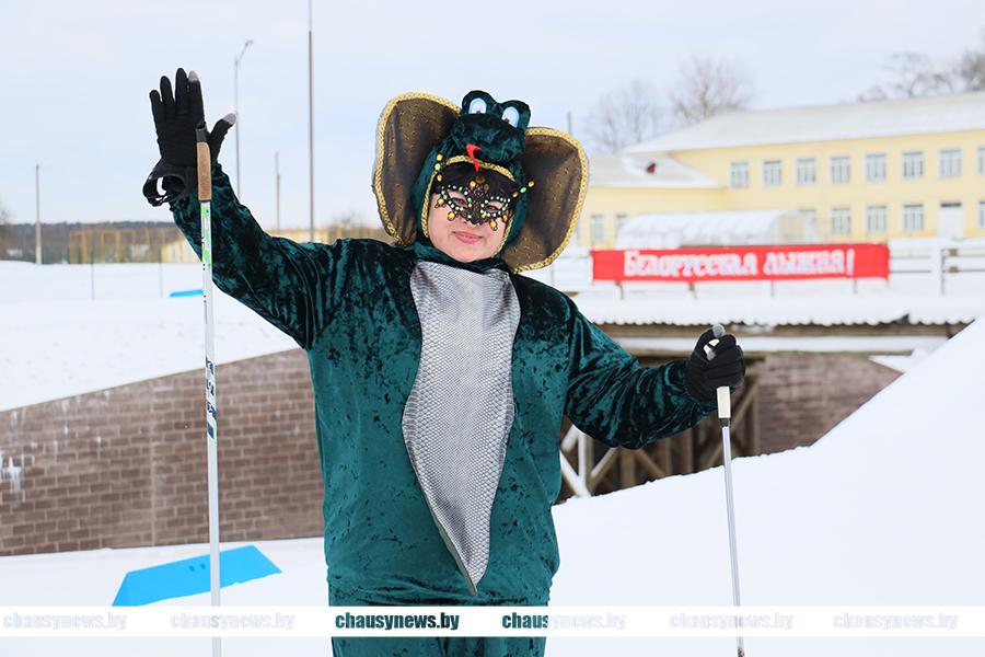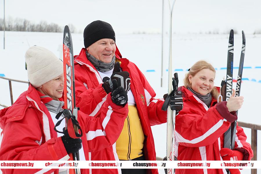 По доброй традиции дал старт соревнованиям и сам вышел на лыжню символ 2025 года – Змея. Зрителям и участниками праздника дружно болели за участников первого забега руководящего состава организаций и предприятий. Многие из них уверенно и солидно смотрелись на всей дистанции в 500 метров. Справились все, но не обошлось и без курьезных падений. Лучшим стал Олег Самсонов из Чаусской областной средней школы, второе место у начальника Чаусского РОЧС Сергея Усанова и третий результат у Александра Подобеда из лесхоза. В женском забеге среди руководителей победу праздновала главный санитарный врач района Дина Бондарева.