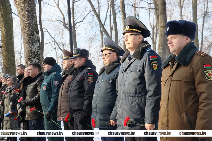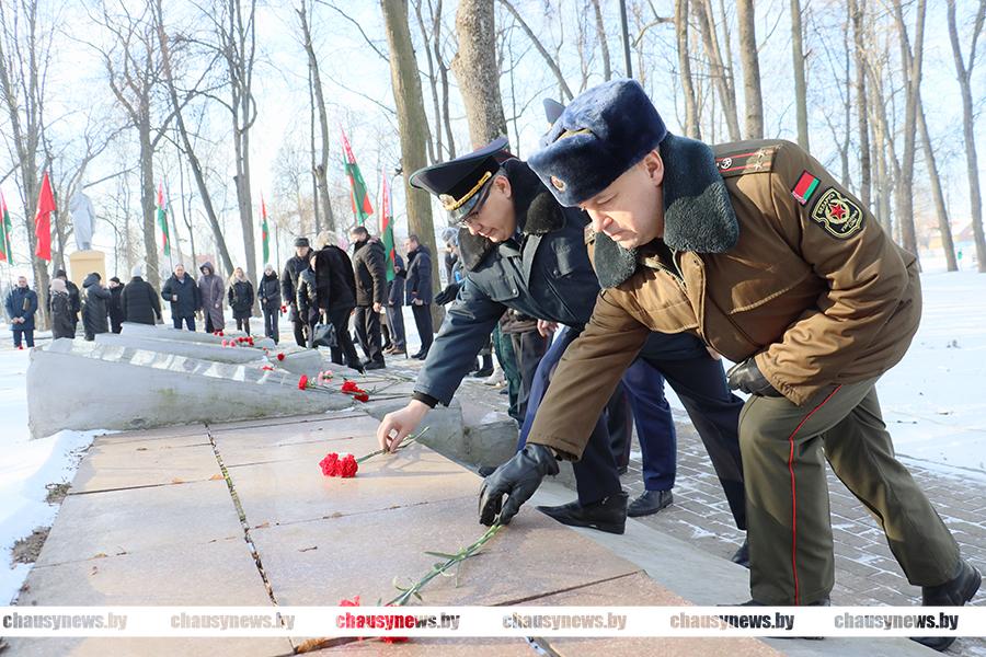 В Чаусах в преддверии Дня защитников Отечества и Вооруженных Сил Республики Беларусь состоялся митинг и возложение цветов к братскому захоронению в городском парке.
