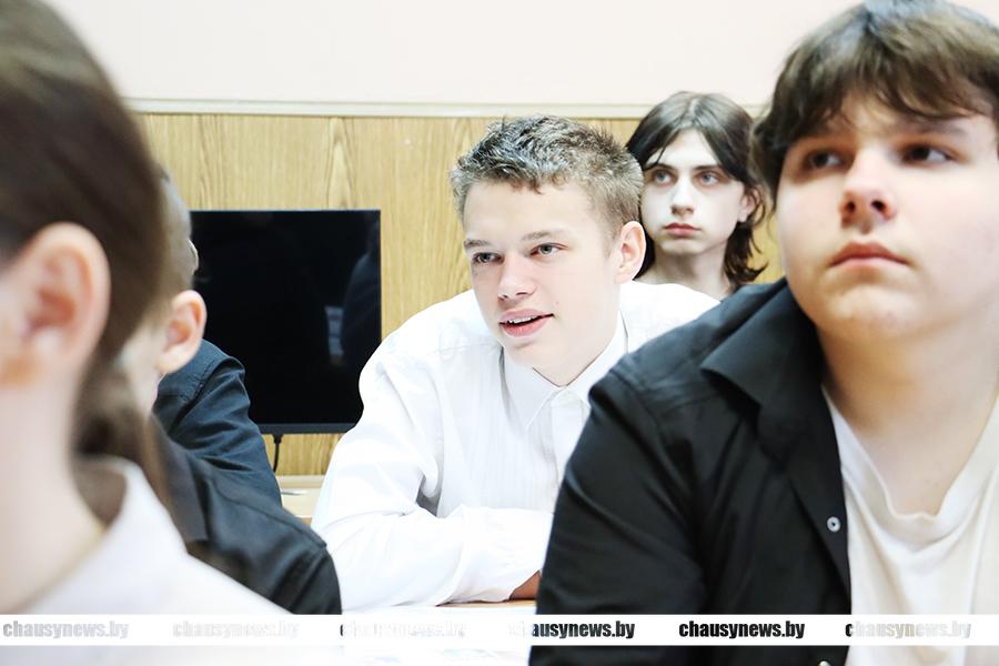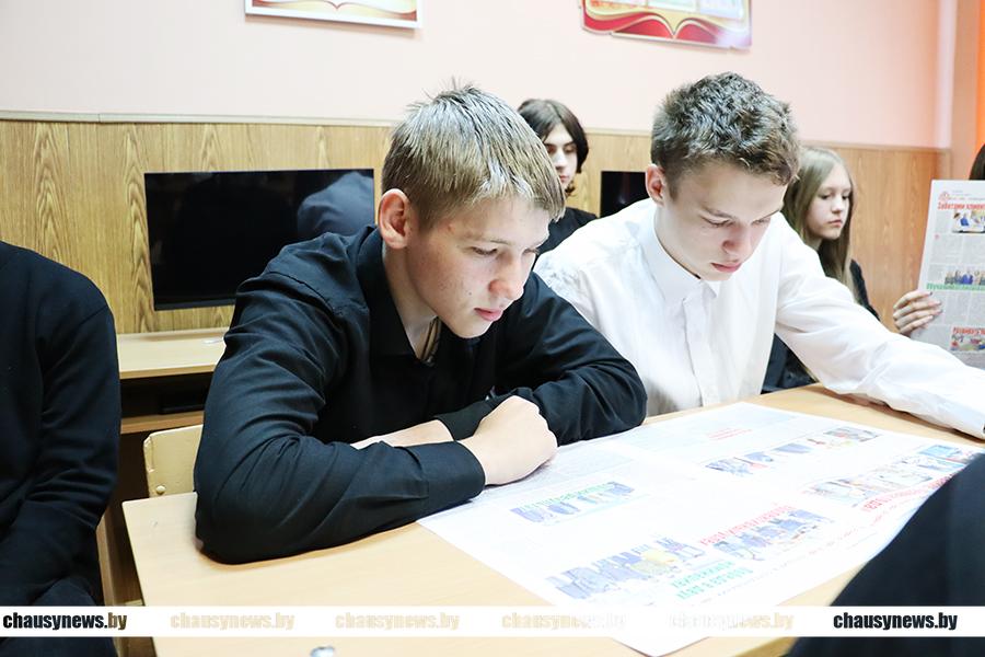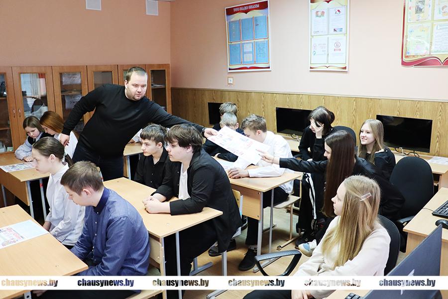 В открытом диалоге выяснилось, что две учащихся девятого класса Татьяна Ковалева и Татьяна Зубарева проявляют неподдельный интерес к профессии журналиста. В какой-то степени девчонки уже погружены в эту профессию. Они фотографируют школьные мероприятия, пишут небольшие заметки в социальные сети своей школы и у них это отлично получается. У них есть еще время определиться с будущей профессией. Денис Евсеенко рассказал девушкам о вузах, которые сегодня готовят журналистов. Один из них – Могилевский университет имени А.А. Кулешова, куда, кстати, девчонки могут пойти обучаться по целевому направлению от редакции.