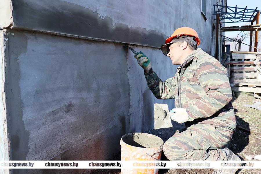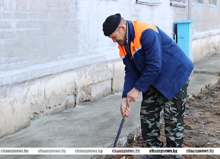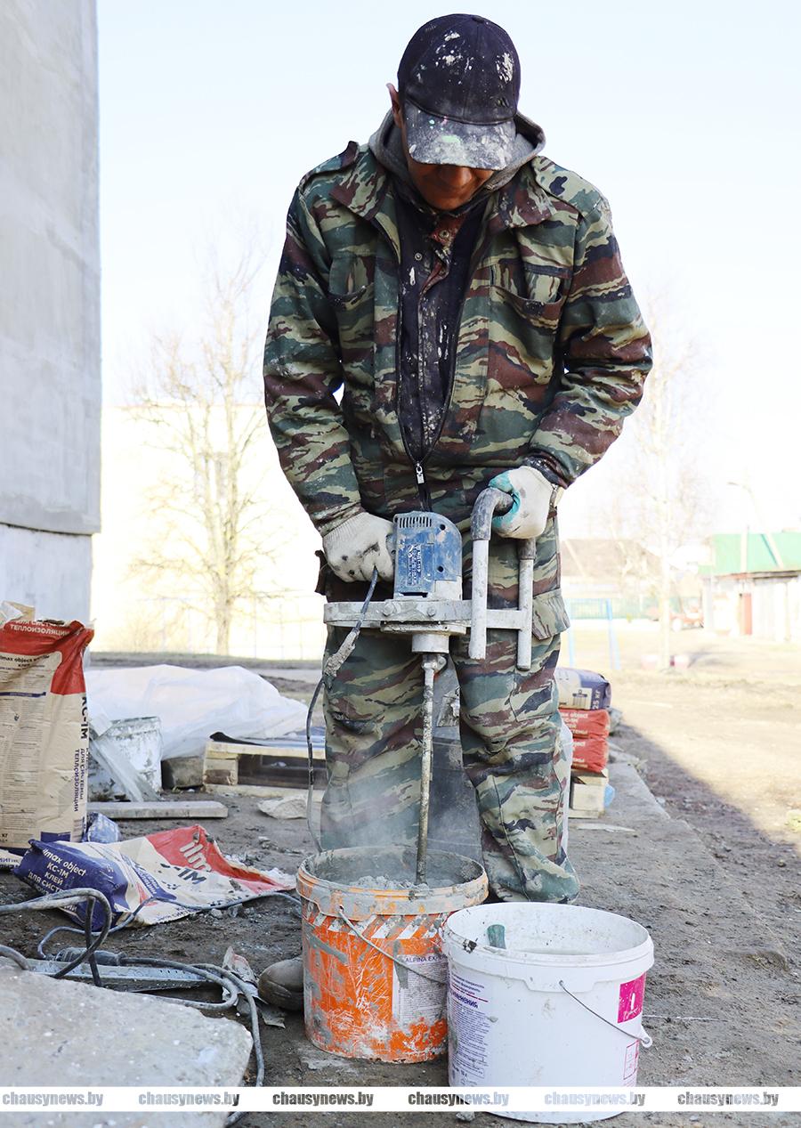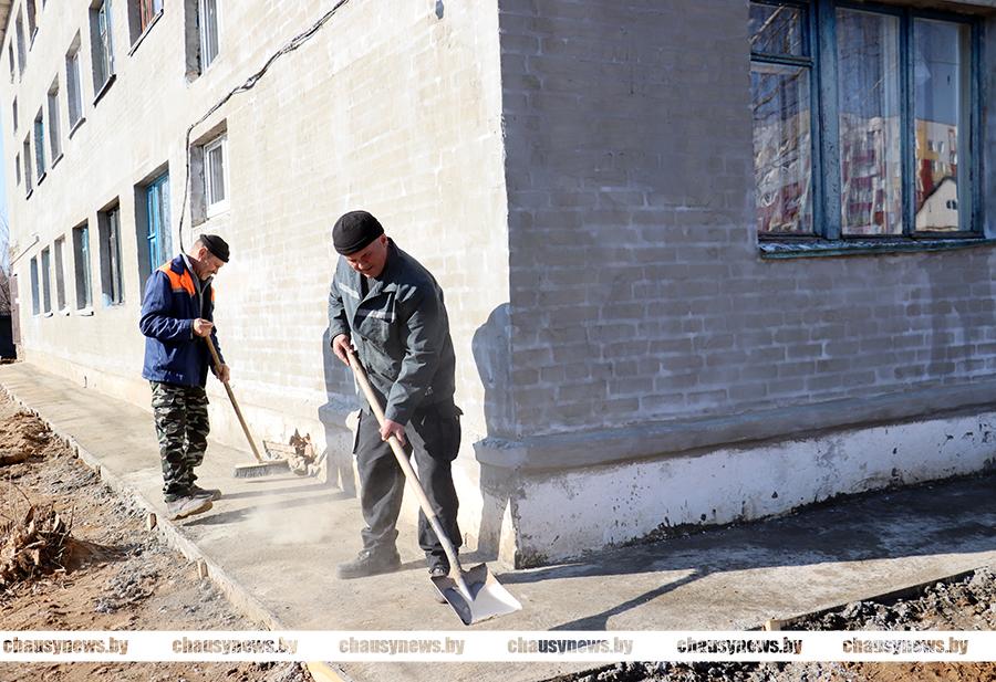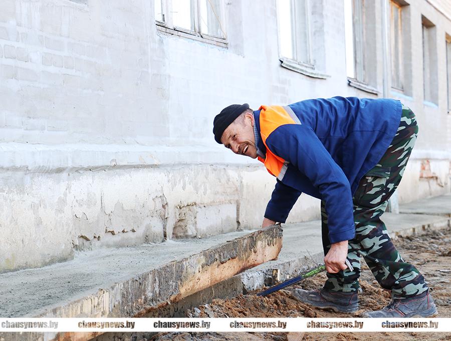 В Чаусском районе приступили к капитальным ремонтам жилищного фонда. На данный момент в городе Чаусы ведутся работы на двух объектах. По адресу: улица Первомайская, дом 42 успешно справляются с проведением капитального ремонта двухэтажки работники УКП «Чаусский Ремстрой». С выездом на место мы узнали, что строители успели заменить кровлю (переклеить), подготовить и оштукатурить фасад дома. Сейчас активно трудятся на устройстве отмостки по всему периметру жилого дома. Будет заливаться также крыльцо, установлены козырьки на входных группах дома.