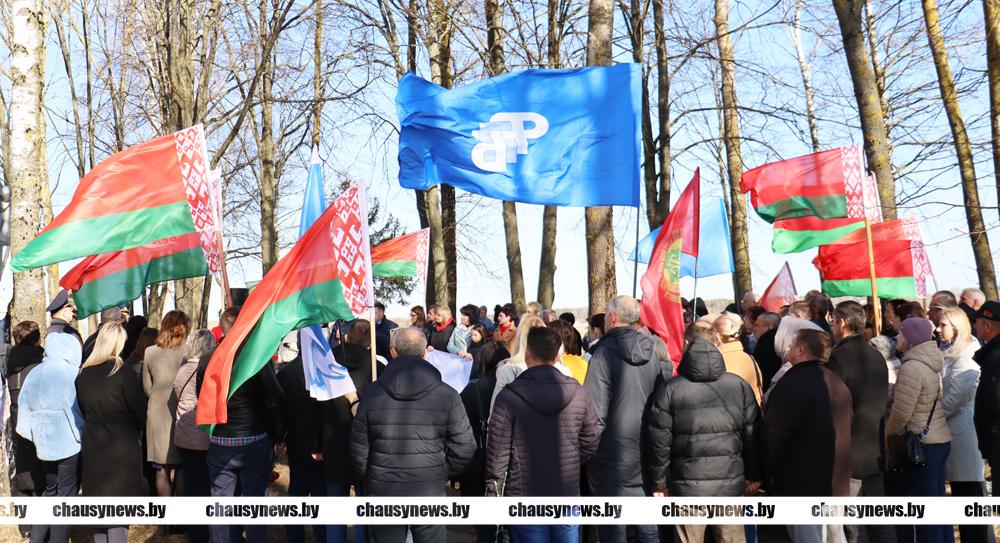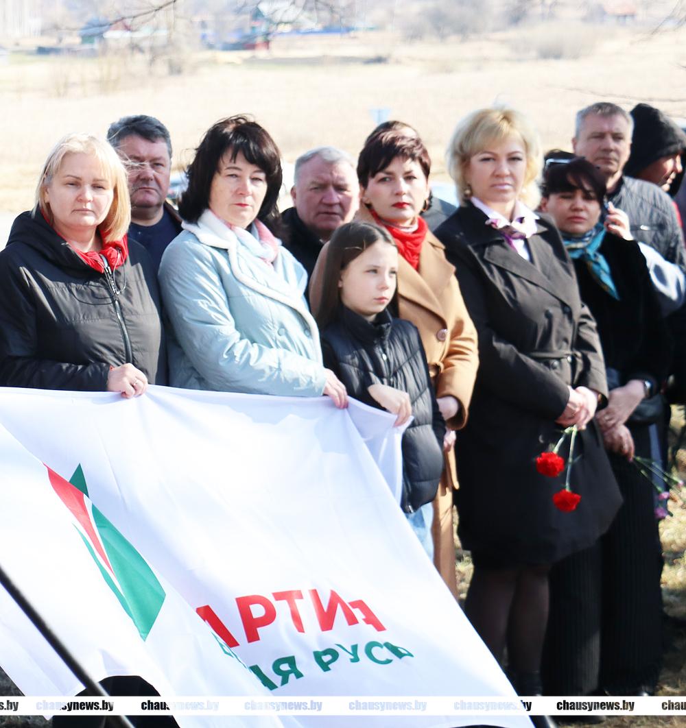 Жители Чаусского района в этот памятный день приняли участие в автопробеге к деревне Голочево, где у памятного знака состоялся мемориальный митинг.