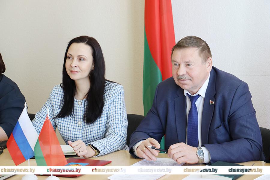 Началось общение в формате телемоста с теплых взаимных поздравлений. Председатель Чаусского районного Совета депутатов Анатолий Матюлин рассказал о развитии органов местного территориального самоуправления, реализации гражданских инициатив, в том числе с поддержкой Могилевской областной ассоциации депутатов местных Советов депутатов.