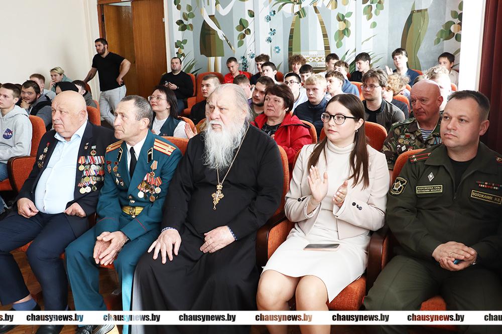 Поздравили ребят с получением повесток ветеран Вооруженных Сил Александр Цындук и ветеран боевых действий на территории других государств (Республика Афганистан) председатель общественной организации «Белорусский союз ветеранов войны в Афганистане по Чаусскому районе Александр Улазовский. Они вспомнили время, когда такими же 18-летними, зелеными пацанами пошли служить в армию.