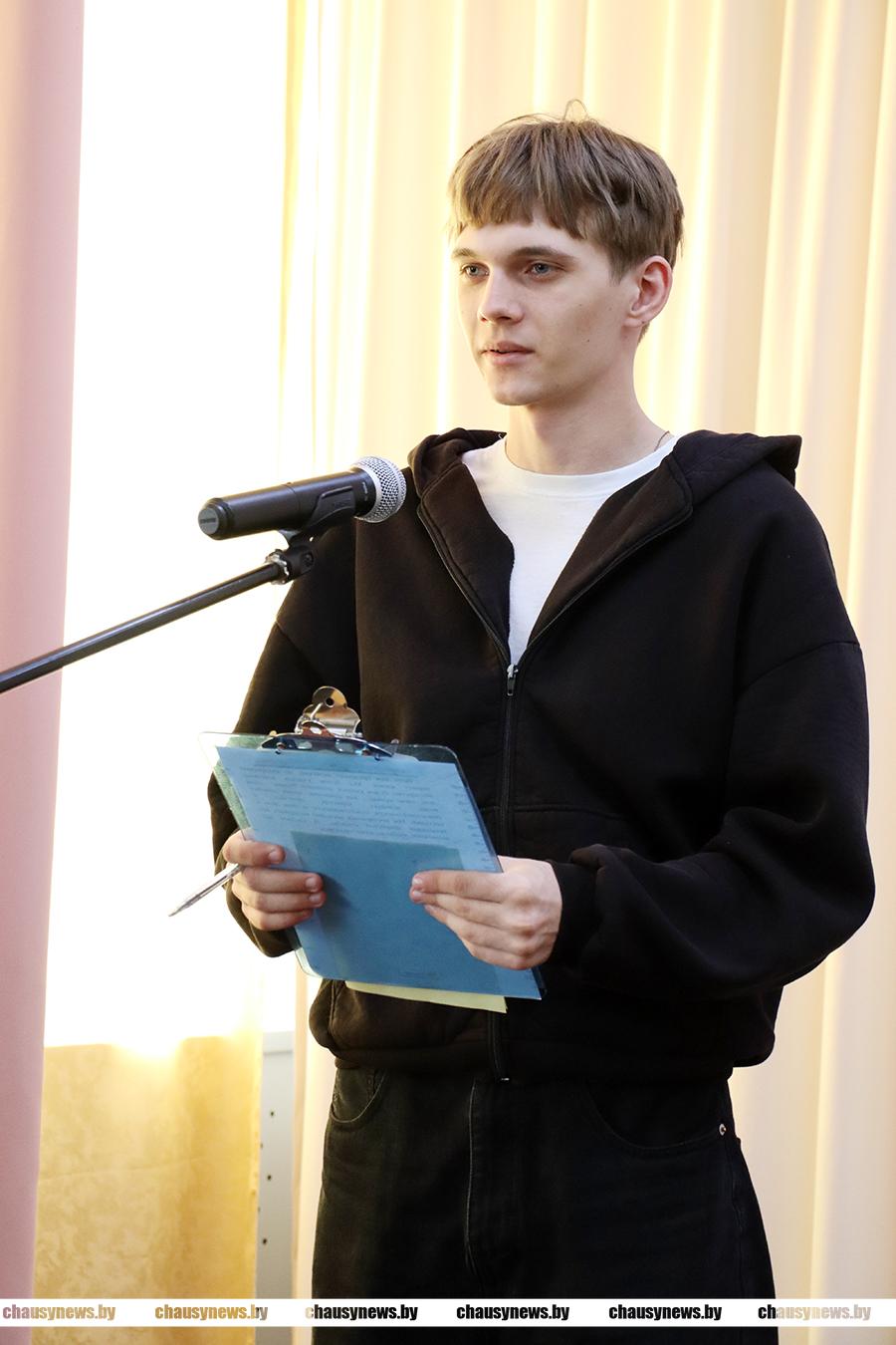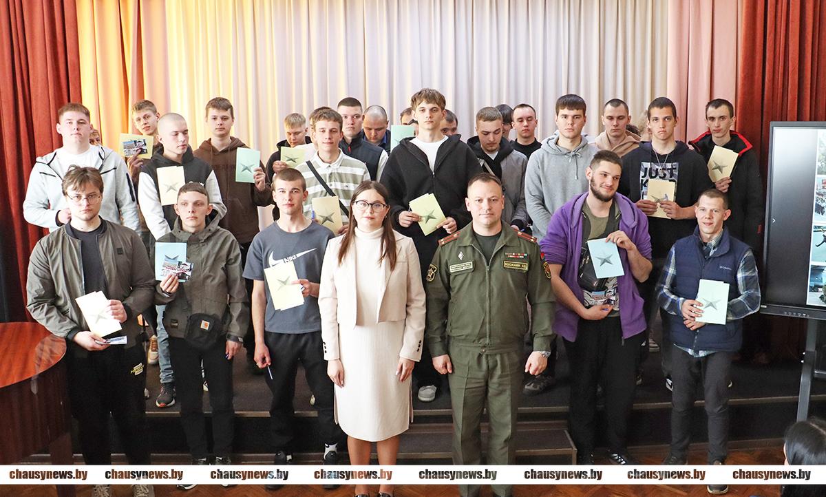 После Максим Воложанин вручил присутствовавшим на мероприятии призывникам повестки. Небольшие сувениры ребятам вручила второй секретарь Чаусского РК ОО БРСМ Оксана Терляева.
