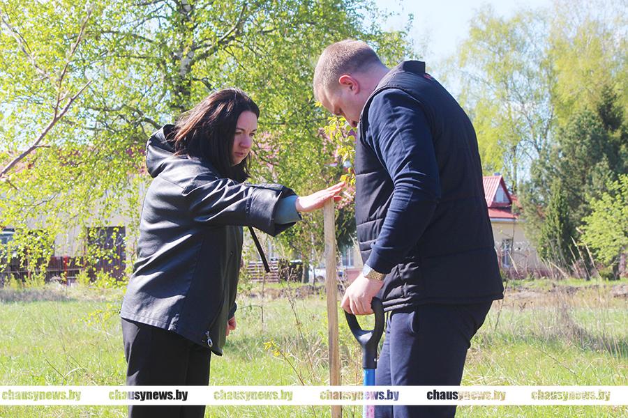 Саженцы каштана, березы и рябины предоставлены Чаусским лесхозом, работники и руководитель организации Александр Подобед потрудились вместе со всеми. Большой вклад в проведение работ внесли работники Чаусского УКП «Жилкомхоз».