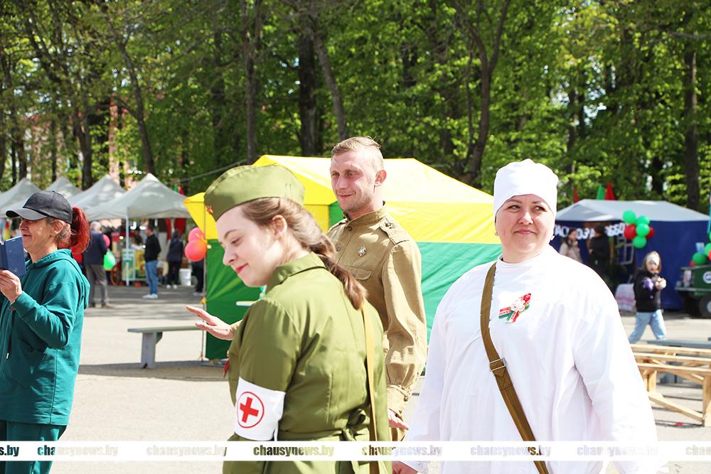 Народный фольклорный ансамбль «Спадарыня» на сцене на городской площади выступают с праздничным концертом, посвященном 80-летию Победы в годы Великой Отечественной войны.