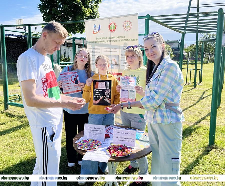 В рамках реализации проекта «Город Чаусы — здоровый город» и Всемирного дня без табака на городском стадионе 31 мая прошла акция « Отдай сигарету – получи конфету».