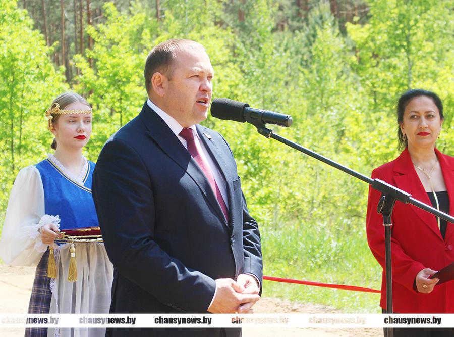 Председатель Чаусского райисполкома Дмитрий Акулич отметил, что в регионе целый год ведётся активная работа по благоустройству – появляются новые арт-объекты, обновляются и украшаются улицы города и села. Появляются объекты и на лесную тематику – не так давно был открыт мурал, а сейчас – новая экологическая тропа. Дмитрий Михайлович подчеркнул: