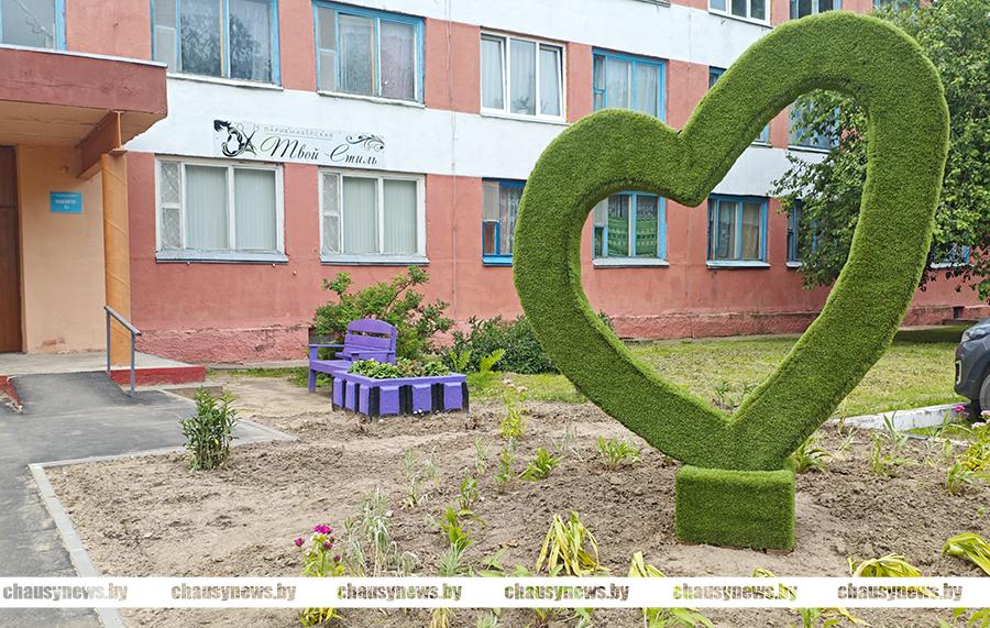 Возле здания общежития по улице 60 лет СССР работниками Чаусского УКП «Жилкомхоз» создана цветочная клумба. Центром композиции стало масштабное топиарное изображение сердца. Работа продолжается. А ещё для жителей микрорайона Сельхозтехника создана уютная зона отдыха со скамейками и цветочницами. Теперь здесь можно не только скоротать время в ожидании автобуса, но и прийти отдохнуть после рабочего дня на свежем воздухе.