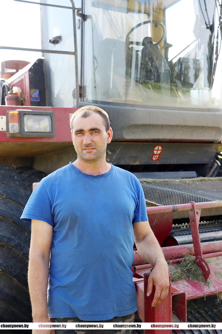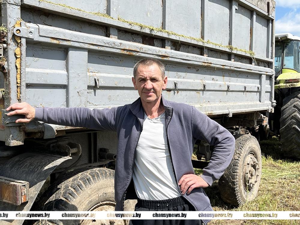 Погода с проливными дождями вносит свои коррективы в темпы работ. На некоторых участках техника вязнет в полях. Об этом нам рассказали механизаторы, которые трудились на неделе на поле у деревни Головенчицы, где мехотряд ОАО «Головенчицы» заготавливал корма. Александр Христесев был занят на отвозке зеленой массы, а Андрей Новиков на КВК-800 подбирал и измельчал травы. Он в хозяйстве с 2018 года. В период заготовки кормов на своем КВК-800 всегда в числе передовиков района.
