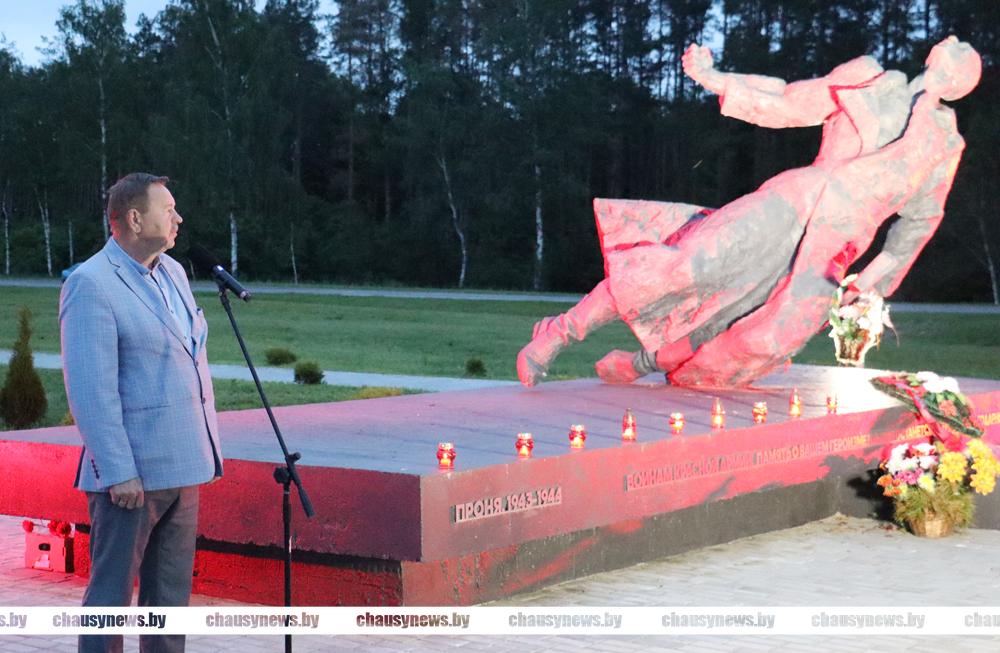 – Мы вспоминаем в эту скорбную дату миллионы погибших советских людей, всех, кто встал на защиту Родины от ненавистного врага, погибших на фронтах, в оккупации, в концлагерях, в партизанских отрядах, умерших от голода в тылу. В Чаусском районе до Великой Отечественной войны проживало более 64 тысяч, после войны осталось 44 тысячи человек. Мы не имеем права на забвение этого подвига и жертв, принесенных во имя мира на нашей земле, во имя будущих поколений.