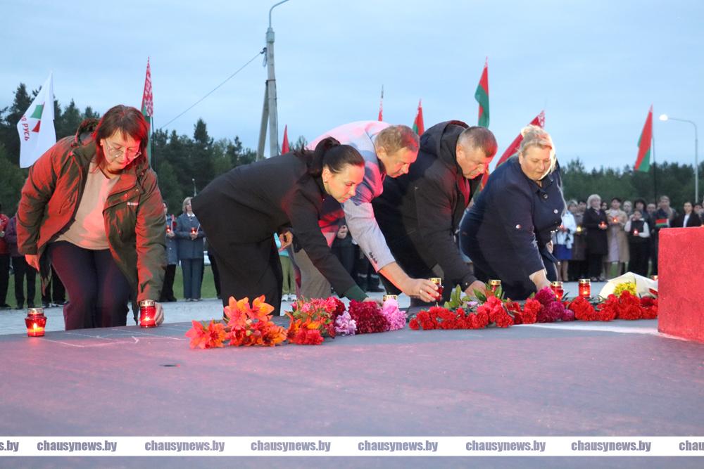 Цветы и лампады у постамента. Как в Чаусском районе 22 июня прошел митинг-реквием