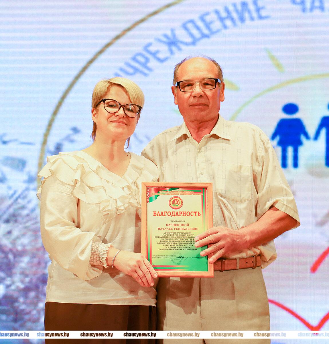 Дмитрий Михайлович открыл церемонию награждения и вручил заслуженные награды социальным работникам. Почетная грамота Чаусского райисполкома вручена Надежде Земцовой, Благодарности районного Совета депутатов объявлены Марии Новокшановой и Надежде Купреевой.