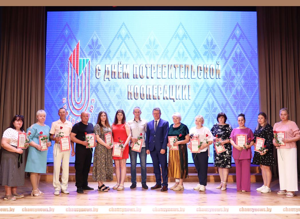 Почетной грамотой Чаусского райпо награждены: Елена Дробная, ведущий бухгалтер Сергей Острекин, администратор системный Дмитрий Глинков, электромонтер по ремонту и обслуживанию электрооборудования; Наталья Шапова, начальник службы по инвентаризационной работе; Наталья Емельянова, буфетчик участка общественного питания; Светлана Крылова, контролер качества продукции и технологического процесса производственного участка; Инна Лапшунова, оператор электронно-вычислительных машин производственного участка; Светлана Ключникова, кладовщик производственного участка; Елена Запрудская, заместитель начальника планово-экономического отдела; Наталья Шкуропацкая а, начальник отдела цен; Ирина Кашуро, ведущий специалист отдела по кадрам; Раиса Луковская, продавец магазина «Заболотье»; Елена Храмцова, ведущий товаровед торгового отдела; Николай Лазарьков; Тамара Сазанович, кладовщик участка распределительных складов; Евгения. Баринова, кладовщик пятого разряда участка заготовок и внешнеэкономической деятельности райпо; Ольга Игнатьева, начальник участка общественного питания; Антонина Барсукова, продавец магазина «Родны кут» агрогородка Лесная; Ольга Карпова, специалист по кадрам Славгородского ОСП. Отмечен наградой также коллектив магазина агрогородка Каменка (Елена Захарова, Наталья Лазарева).