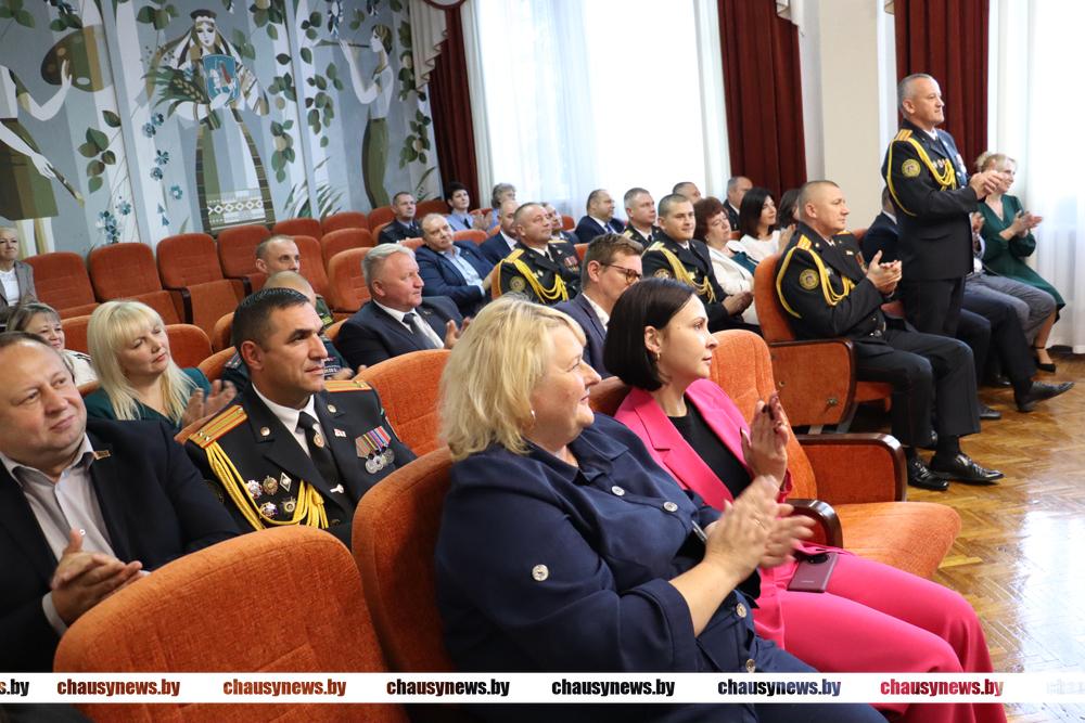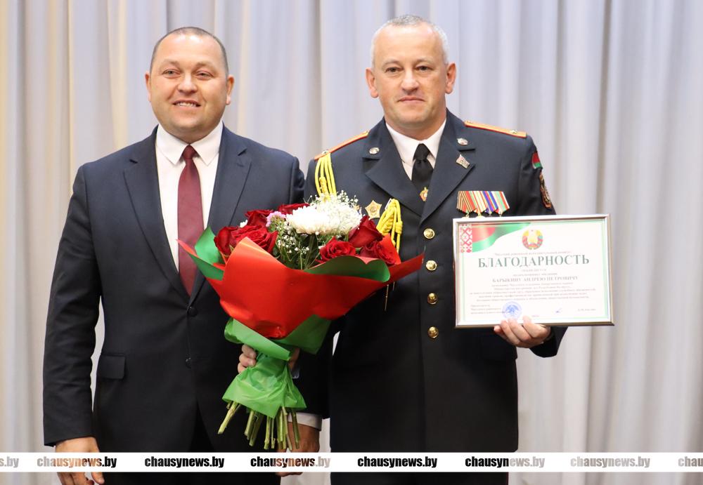 Председатель Чаусского райисполкома Дмитрий Акулич в своем поздравлении отметил умение Андрея Барыкина оперативно решать поставленные задачи, брать на себя ответственность порой в очень непростых условиях. Дмитрий Михайлович поблагодарил подполковника за честную службу на благо района и предложил после короткого отдыха вернуться в Чаусский район и трудиться в другом качестве.