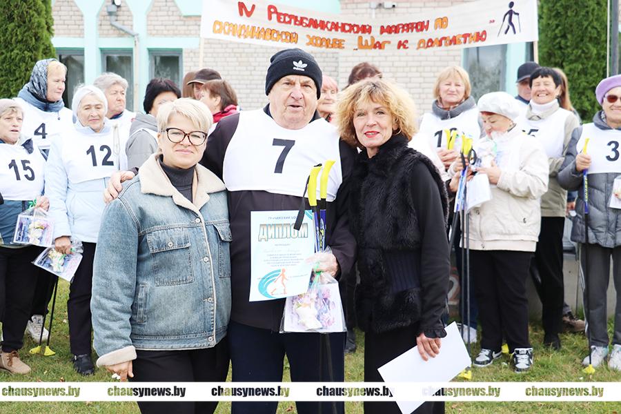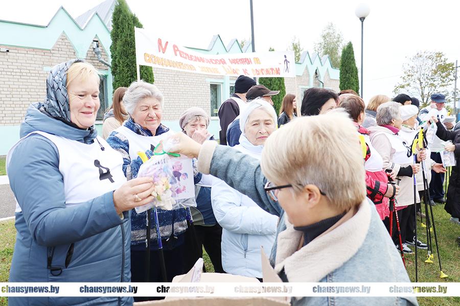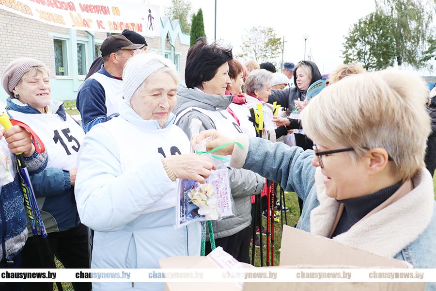 Неравнодушные, активные и позитивные жители Чаус в возрасте 60+ с хорошим настроением пообщались, провели вместе разминку, а затем преодолели отведенную дистанцию. Директор Чаусского РЦСОН Наталья Карпекина поблагодарила всех участников за отличный пример для подрастающего поколения, поздравила с наступающим Днем пожилых людей и вручила подарки для всех участников соревнований. Как самые старшие среди прошедших в этот день свою дистанцию отмечены специальными дипломами Ольга Ивановна и Леонид Иванович Хичевские.