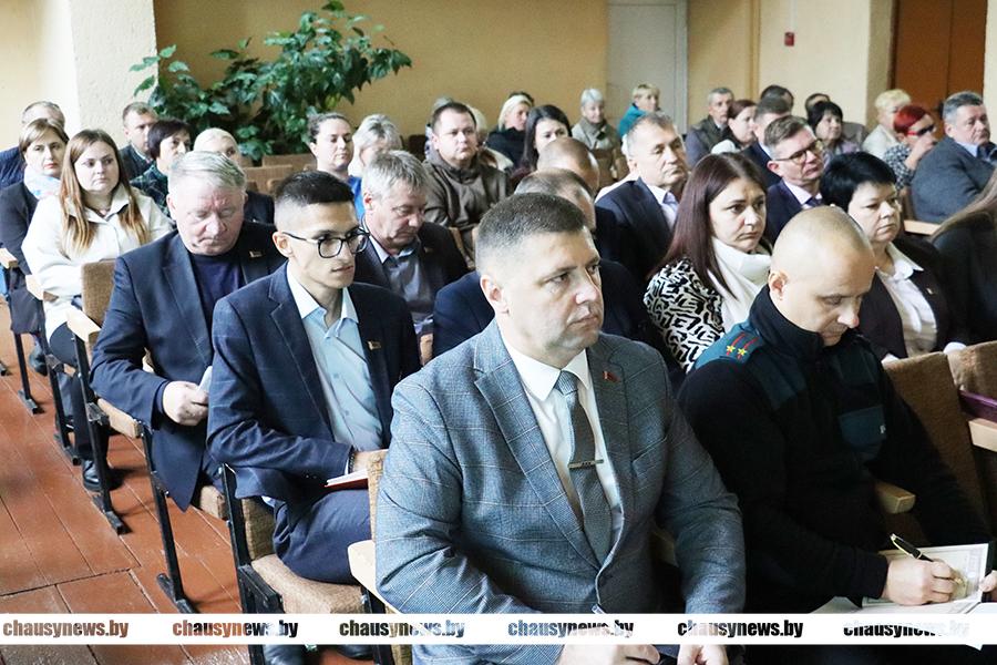Мероприятие проходило под руководством председателя Чаусского районного Совета депутатов Анатолия Матюлина с участием председателя райисполкома Дмитрия Акулича, председателей сельисполкомов, руководителей районных служб, актива органов общественного территориального самоуправления.