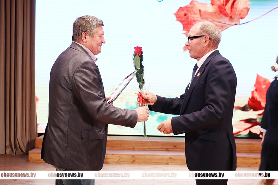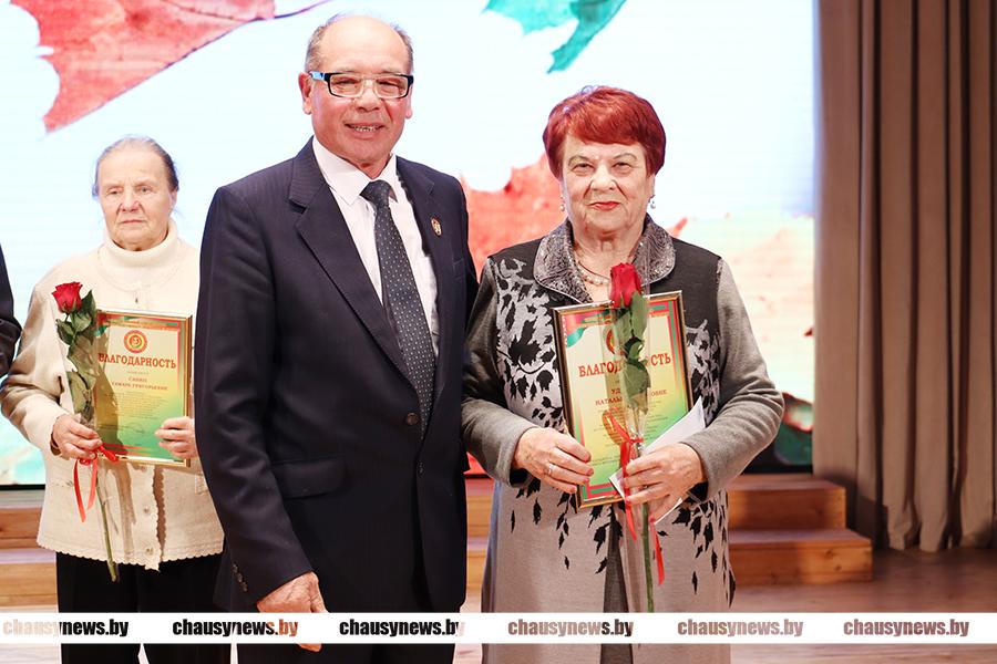 Председатель районного Совета ветеранов Анатолий Наумович Винкевич. Благодарность Чаусского районного Совета ветеранов объявлена: Тамаре Григорьевне Сабко, председателю первичной ветеранской организации Чаусской районной больницы; Анатолию Дмитриевичу Титову, председателю первичной ветеранской организации «Ветераны спорта»; Наталье Михайловне Удодовой, председателю ревизионной комиссии районного Совета ветеранов.