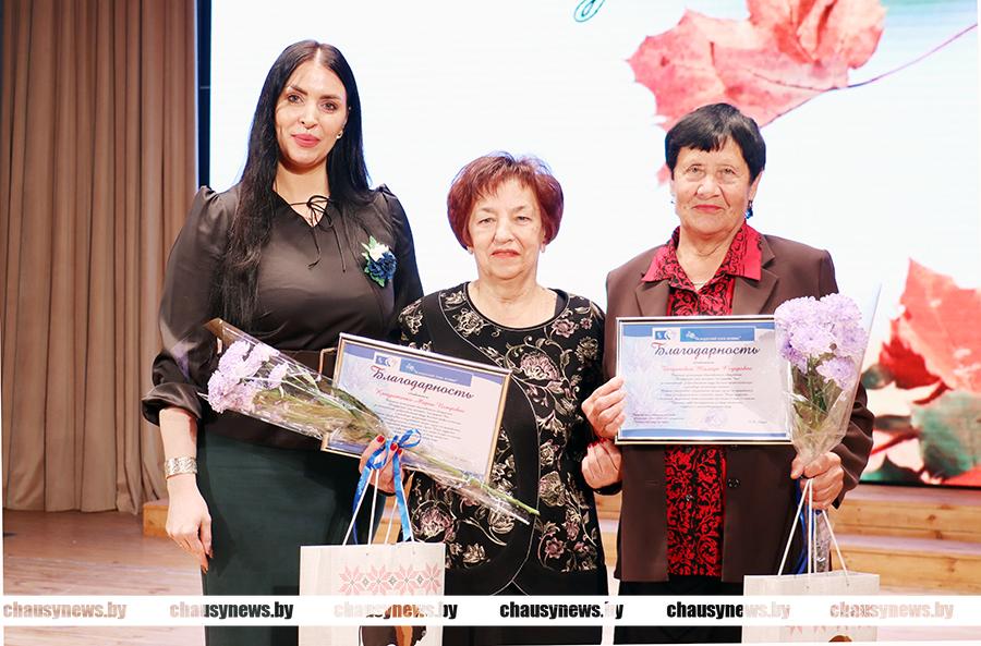 Председатель Чаусской районной организации общественного объединения «Белорусский союз женщин» Наталия Акулич прочла трогательное стихотворение, поздравила ветеранов труда, женщин, которые трудились, а многие ещё трудятся, принося пользу обществу, при этом обеспечивают заботу и уют своим семьям. Наталия Владимировна вручила ценные подарки Тамаре Фёдоровне Богдановой и Марии Петровне Кондратенко. Работники культуры подготовили тематическую концертную программу, в которой были исполнены и всеми любимые песни прошлых лет.