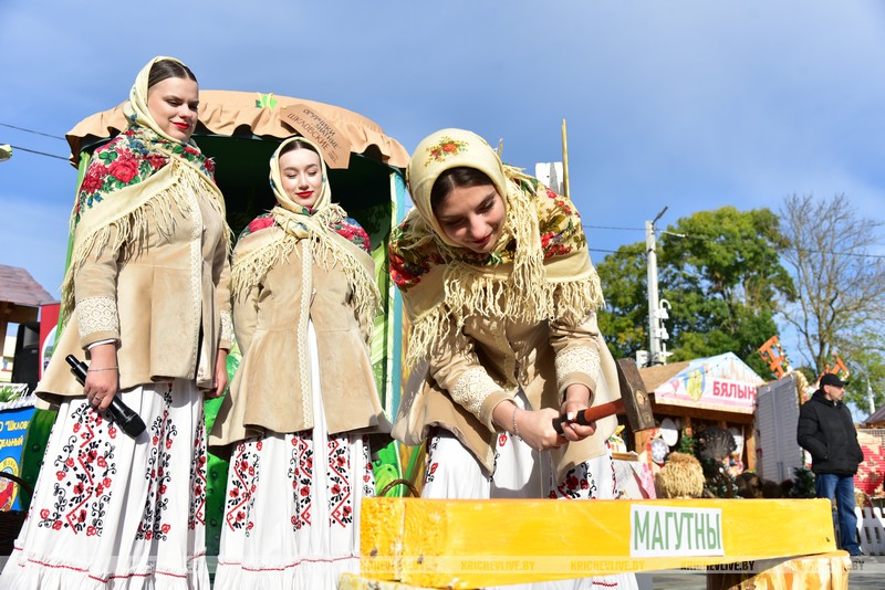 Областной фестиваль-ярмарка тружеников села «Дажынкi – 2025» проходит сегодня в Кричеве. Уже начали работать торговые ряды, площадки сельскохозяйственной продукции, выставки-презентации и выставка сельскохозяйственной техники. Каждая выставка индивидуальна. Красочные костюмы, веселые песни и пляски радуют гостей праздника. «Домочай» уже удивляет большой буханкой хлеба. Праздник набирает обороты.