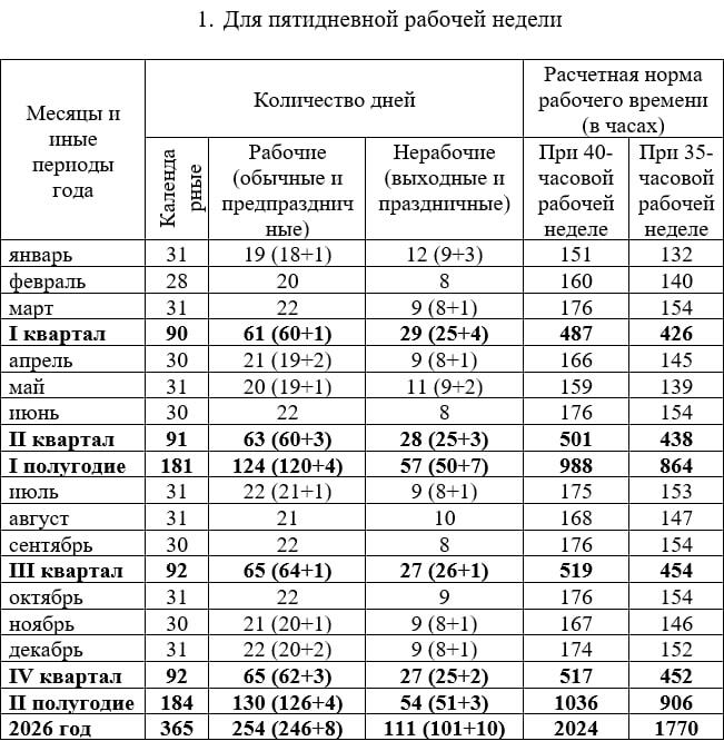 В Беларуси установлена расчетная норма рабочего времени на 2026 год.