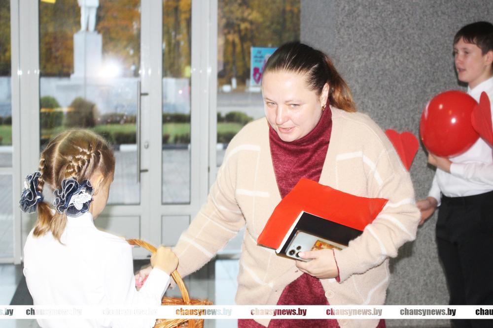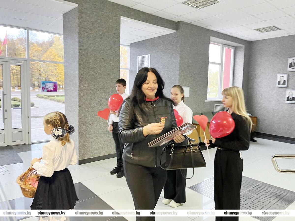 С самого утра 14 октября жительницы Чаусского района принимали поздравления с Днем матери от родных и близких, в трудовых коллективах. Ребята и педагоги второй городской школы Чаус подготовили приятный сюрприз для сотрудниц Чаусского райисполкома.
