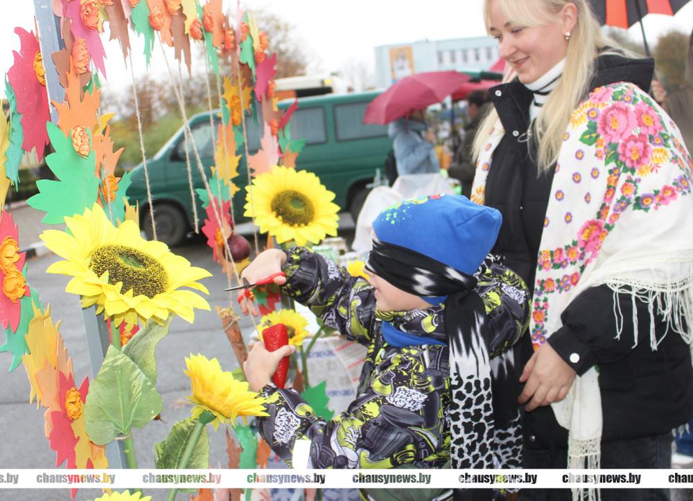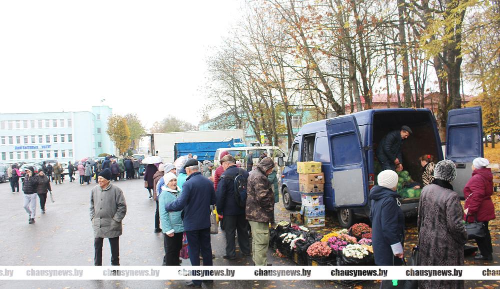 На городской площади Чаус 18 октября шумно и многолюдно. Жители и гости города, сельской местности спешат использовать отличную возможность сделать на зиму запасы овощей, прикупить саженцев и цветов для сада. Продают на ярмарке и многое другое.