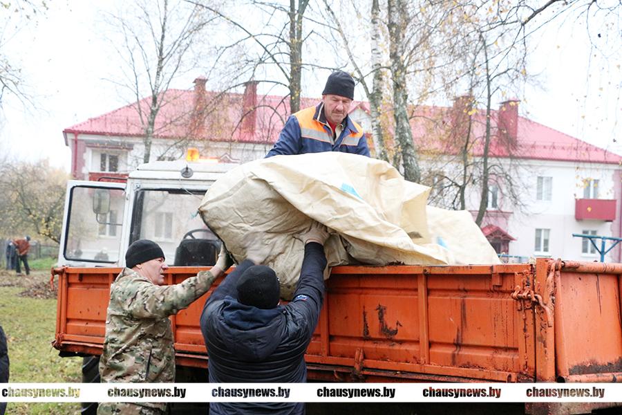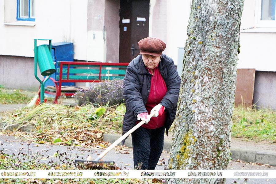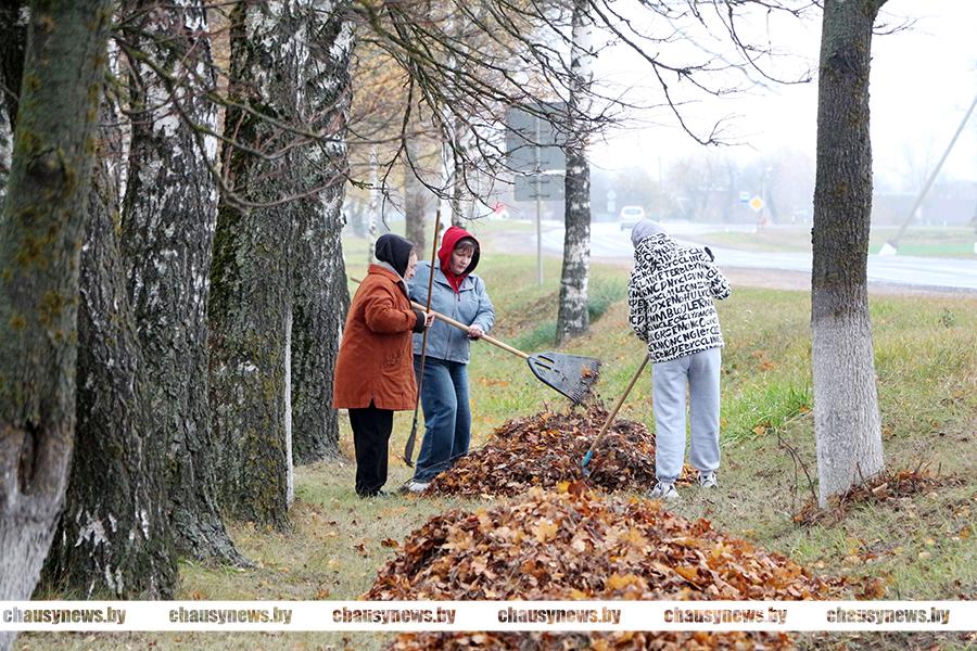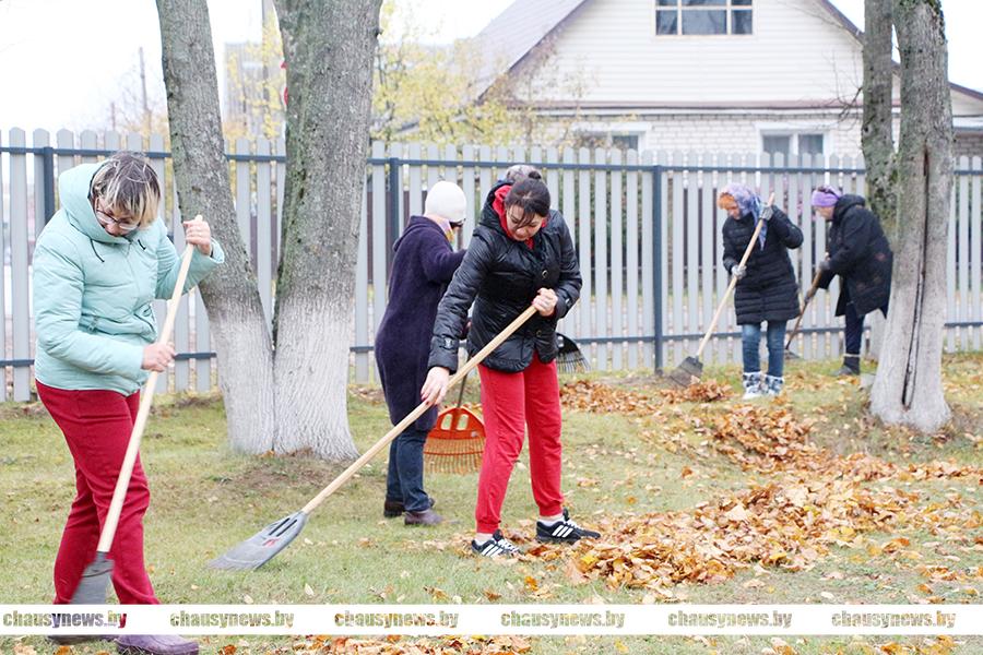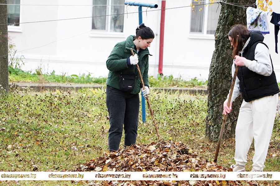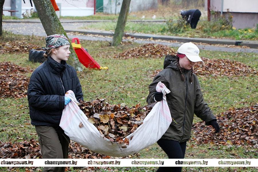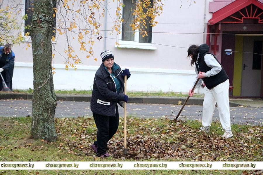 Ранним утром, 25 октября, в микрорайоне Сушильный кипела работа. Местные жители, а большинство из них пенсионеры, вместе с членами Молодежного совета при Чаусском районном Совете депутатов, представителями районного комитета БРСМ, а также специалистами отдела идеологической работы и по делам молодежи наводили порядок на придомовой территории двухэтажек, сгребали и убирали опавшую листву.