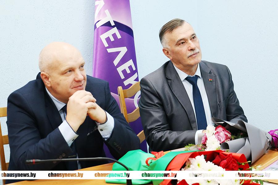 – Мы гордимся такими ответственными руководителями, которые умеют организовать работу коллектива, выполнять плановые показатели, добиваться высоких результатов. Ваш коллектив неоднократно был в числе победителей районного соревнования, что говорит о многом. Спасибо за достойный вклад в развитие региона, – подчеркнул Дмитрий Михайлович и вручил Почетную грамоту Чаусского райисполкома Николаю Валентиновичу. Председатель Чаусского районного Совета депутатов Анатолий Матюлин вручил ему и Почетную грамоту РСД. Анатолий Олегович вспомнил годы совместной работы, когда приходилось обеспечивать проводную телефонную связь, для коммуникаций между субъектами хозяйствования и контактов между людьми. Меняются технологии, сейчас оптоволоконные линии обеспечивают и телефонную связь, и интернет, и телевидение, а труд работников ЗУЭС все также востребован.