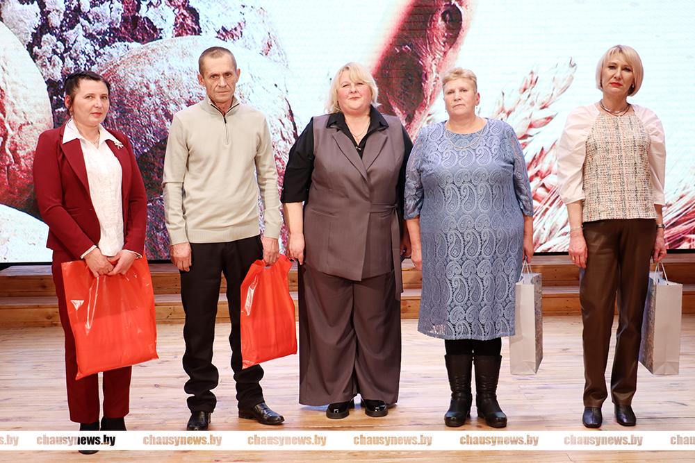 Подарки от Чаусского районного исполнительного комитета вручены ветеранам труда, проработавшим в сельском хозяйстве более 10 лет: Татьяне Игнатьевне Белоусовой, Виктору Николаевичу Громыко; Николаю Ивановичу Козинкову; Елене Васильевне Никифоровой; Николаю Матвеевичу Отдельному; Сергею Николаевичу Подберезскому; Александру Андреевичу Семенкову, которых от имени ветеранов труда поздравил коллег с праздником.