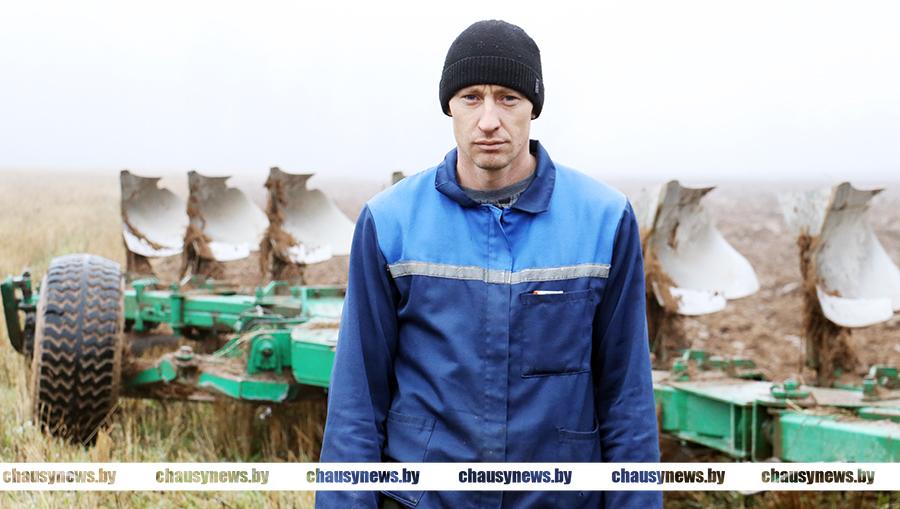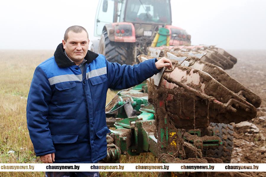 Неподалеку  работал и Виталий Можейко из ОАО «Мирный Агро». – Пахота в этом году не их легких, очень много влаги в почве. Местами трактор вязнет. Но нам не привыкать в таких условиях работать, будем делать свое дело, – замечает аграрий. Виталий Владимирович родом из деревни Запрудье Могилевского района. После окончания школы в Недашево, учился в Буйничском колледже, где получил удостоверение водителя, тракториста. Затем два года службы в армии. Вернулся домой, женился. Супруги уехали работать в Чаусский район.