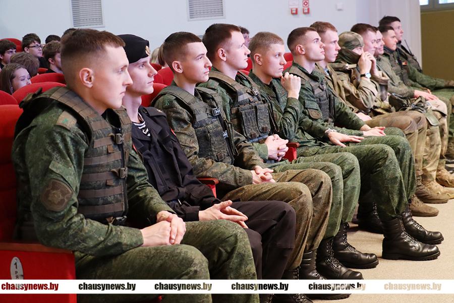 Курсанты военных вузов страны в завершение встречи выступили на чаусской сцене с небольшой концертной программой, доказав, что в вузах созданы все условия для успешного обучения по специальности и развития талантов.
