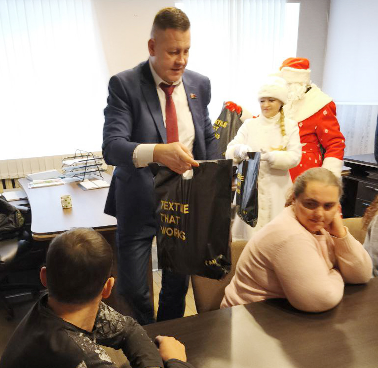 Встреча прошла в теплой и дружеской атмосфере за чашкой чая. Юрий Александрович поздравил многодетных мам и отцов с наступающими новогодними праздниками, пожелал счастья, мира и добра. Он также отметил, что каждый ребенок в нашей стране заслуживает того, чтобы их мечты под Новый год исполнялись. От коллектива ОАО «Моготекс» Юрий Александрович вручил новогодние подарки 11 семьям.