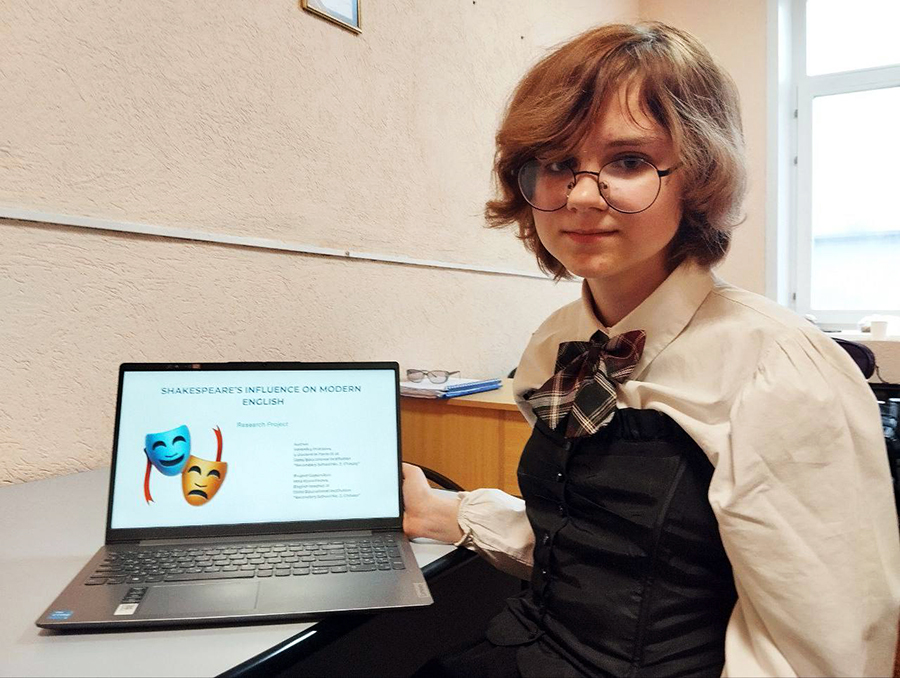 Диплом третьей степени по английскому языку завоевала учащаяся второй городской школы Вероника Протаева. Вместе со своим руководителем, Инной Крючковой, они выбрали интересную и, главное, знакомую тему – влияние Шекспира на современный английский язык:
