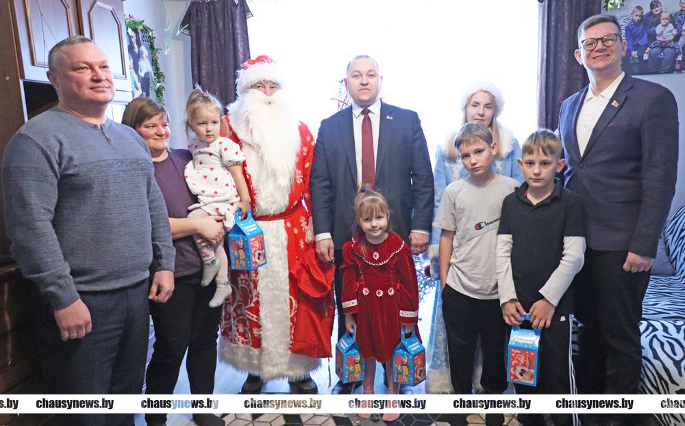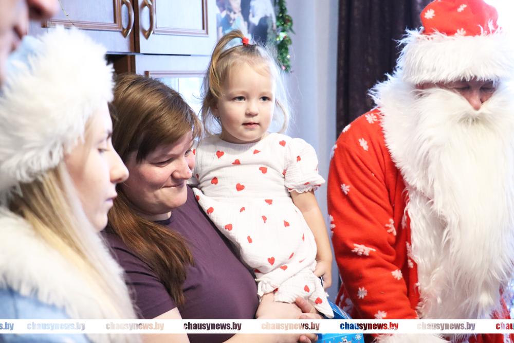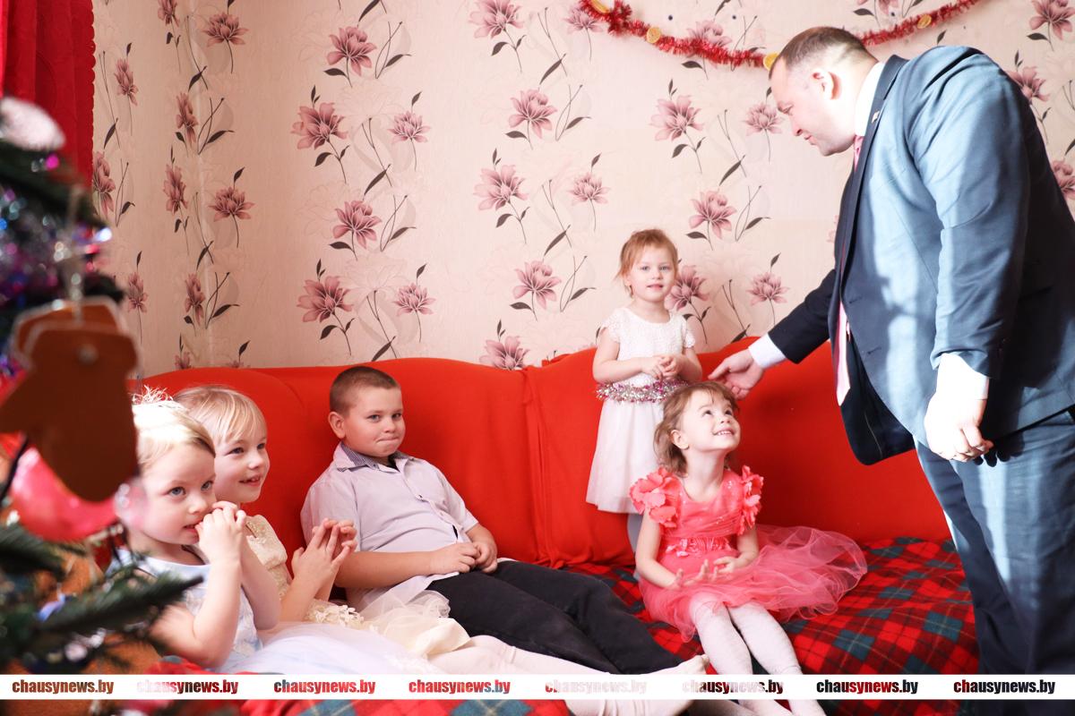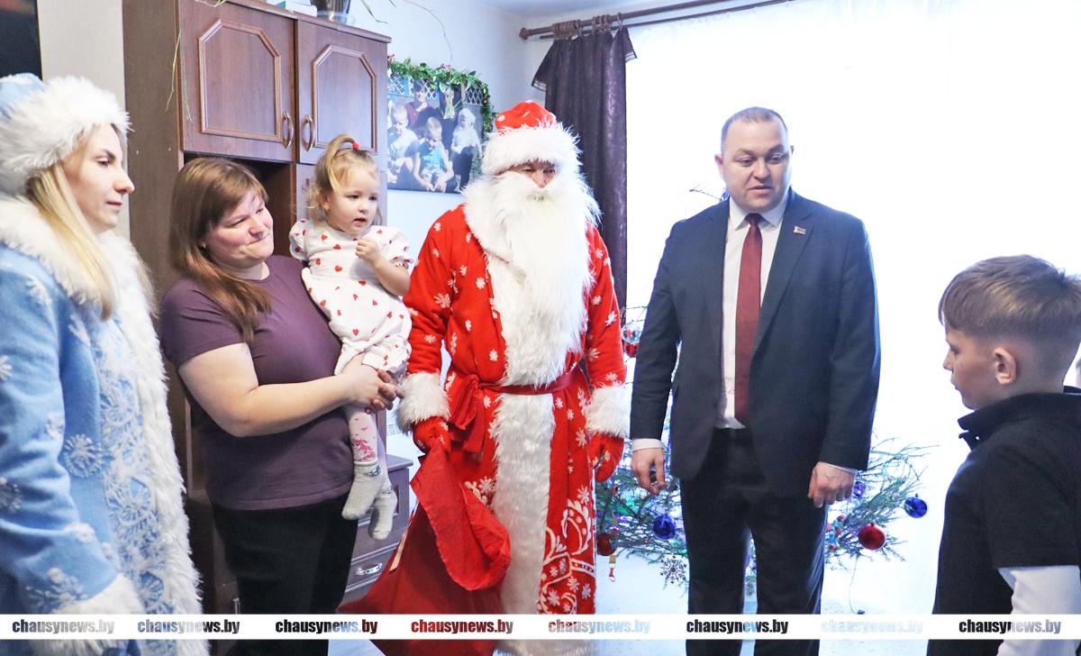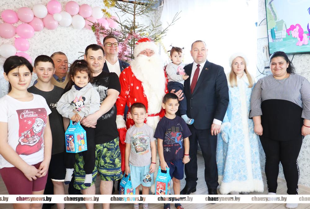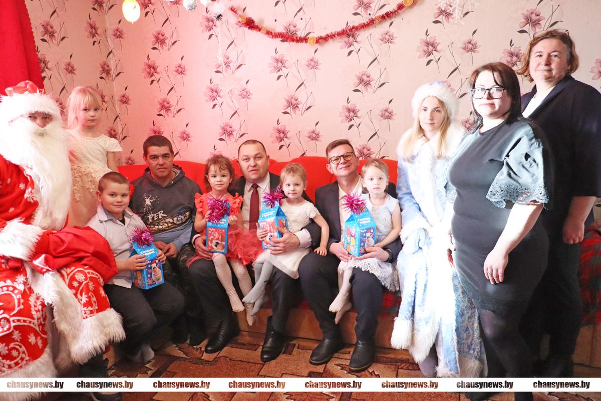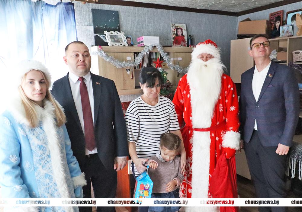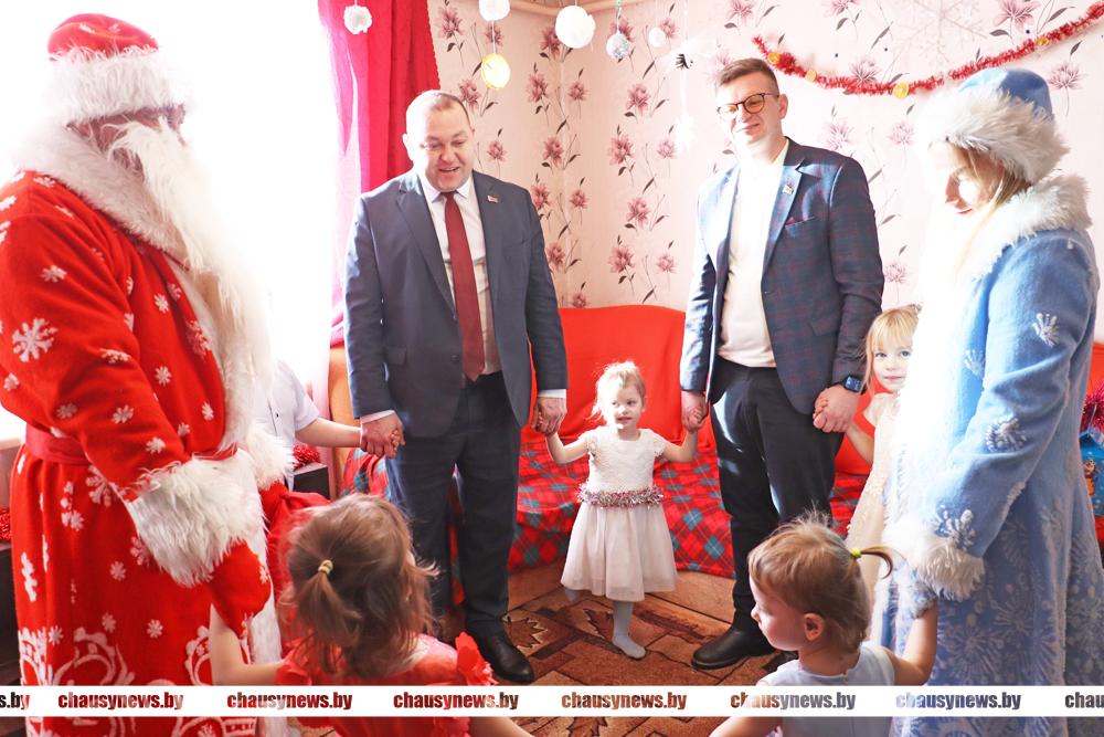 В рамках празднования новогодних и рождественских праздников в нашей стране стало традицией проводить добрую акцию «Наши дети». Не зря считается, что эта пора исполнения желаний. В акции участвуют все желающие, от руководителей предприятий, организаций, до местной вертикали власти. Председатель Чаусского райисполкома Дмитрий Акулич и начальник отдела по образованию Денис Никифоров вместе с главными героями праздника Дедом Морозом и Снегурочкой, а также подарками и хорошим настроением наведались в гости к ребятам.