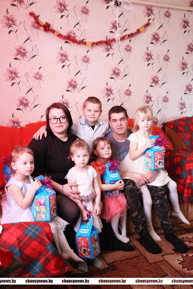 Другой точкой в маршруте стал агрогородок Дужевка. Там с подарками навестили семью Марины Белошицкой и Вадима Быкова. Вместе они воспитывают четырех дочерей и сына. Захар самый старший в семье, ходит во второй класс. В этом году в школу пошла и Лера, она первоклашка. А вот Ульяне, Злате и Владе еще рановато в школу. Но девчонки уверенно напевали «В лесу родилась елочка» и водили хоровод.