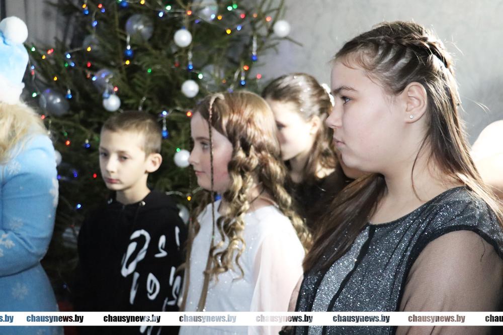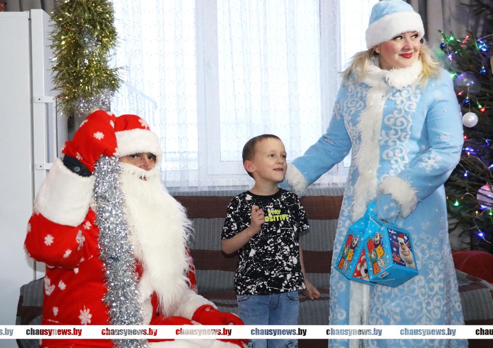 Мальчишки и девчонки встречали Деда Мороза и Снегурочку, для которых подготовили стихи и получили сладкие подарки.