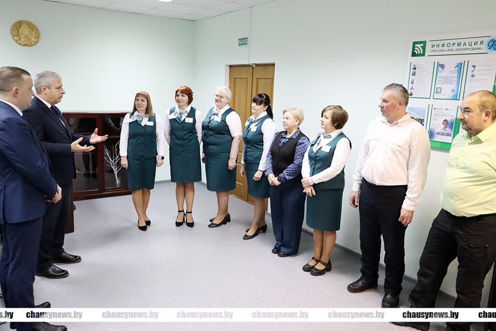 Работники Центра банковских услуг № 725 ОАО «АСБ Беларусбанк» в городе Чаусы ранним утром 5 января принимали поздравления с профессиональным праздником. Их поздравлял заместитель председателя Чаусского райисполкома Андрей Верховодкин.