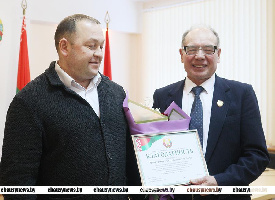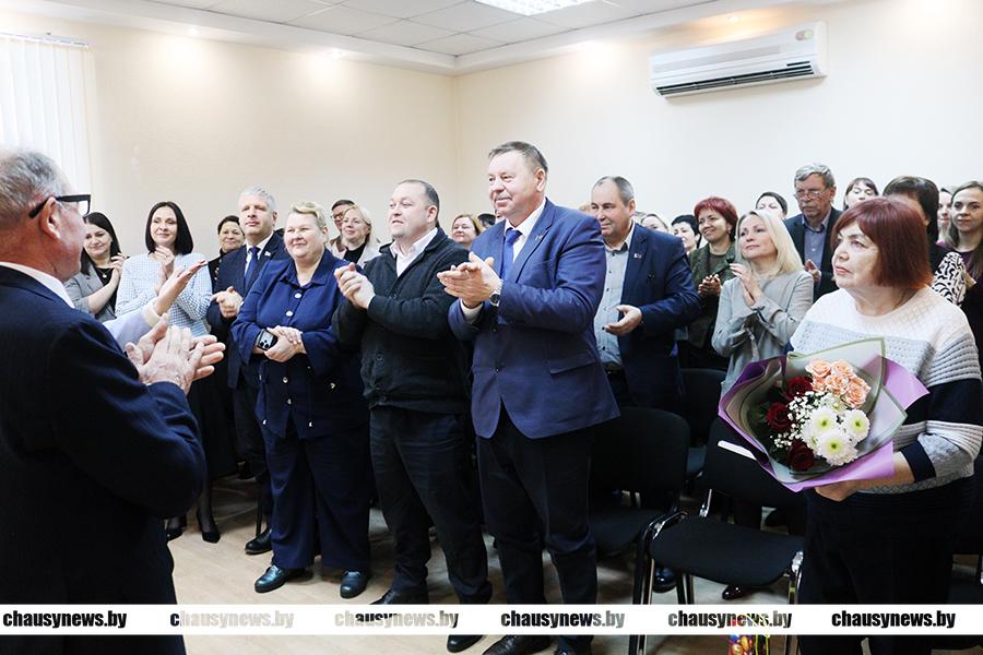 Председатель Чаусского райисполкома Дмитрий Акулич поздравил юбиляра с замечательной датой, отметив, что на протяжении всей своей жизни Анатолий Наумович был примером как для своих ровесников, так и для подрастающего поколения. Дмитрий  Михайлович вручил Анатолию Наумовичу Благодарность от районного исполнительного комитета, письмо с самыми тёплыми пожеланиями, и цветы.