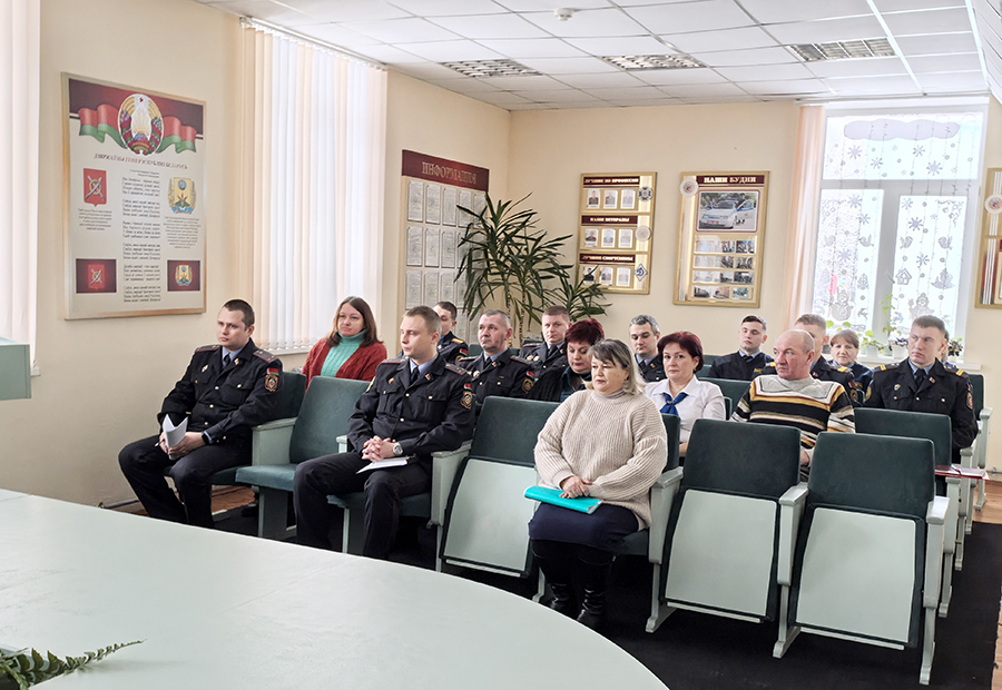 В Чаусском отделении Департамента охраны Министерства внутренних дел 12 января 2026 года подвели итоги финансово-хозяйственной деятельности за 2025 год. В мероприятии принял участие заместитель начальника Могилевского областного управления Департамента охраны МВД, начальник отдела идеологической работы и кадрового обеспечения Владимир Михалёв.