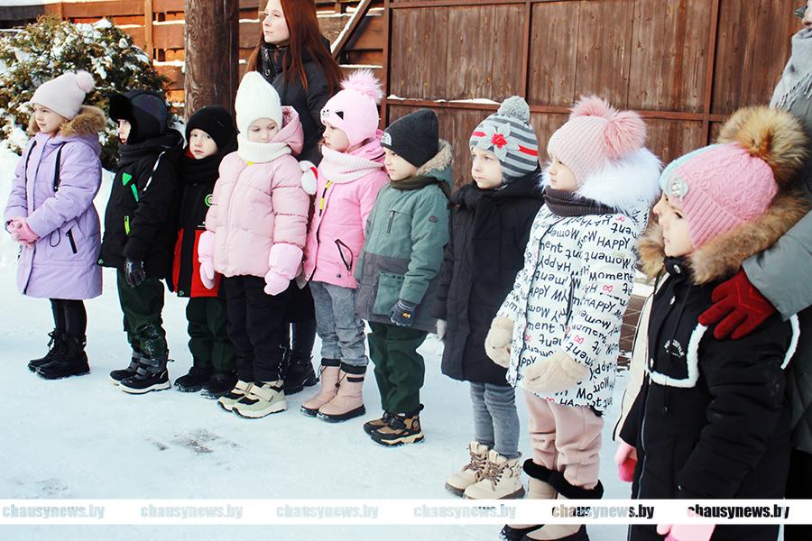Встречали гостей со всех уголков Могилёвщины работники культуры и ребята из дошкольного лесничества «Вясёлка» детского сада №4. И для детей, и для взрослых было организовано театрализованное представление, призванное познакомить с традициями колядования в Чаусском районе. Песни, танцы, игры – все смогли повеселиться. А маленькие защитники леса рассказали стихотворения и даже аккомпанировали себе музыкальными инструментами. За своё активное участие все получили памятные и сладкие подарки от Чаусского лесхоза.