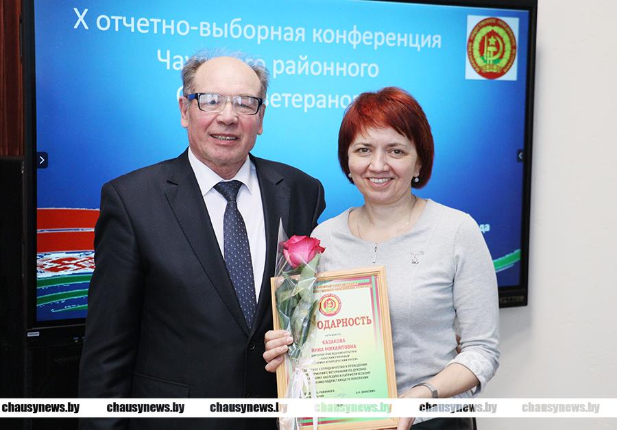 Сам Анатолий Винкевич отметил Благодарностями районного Совета ветеранов главного редактора районной газеты «Искра» Наталью Шкредову, директора историко-краеведческого музея Инну Казакову, начальника управления по труду, занятости и социальной защите населения Светлану Пономарёву, директора библиотечной сети Ирину Козубовскую, главного специалиста райисполкома Елену Власик, директора Чаусского РЦСОН Наталью Карпекину. Последняя также вручила Анатолию Наумовичу Благодарственный адрес центра.