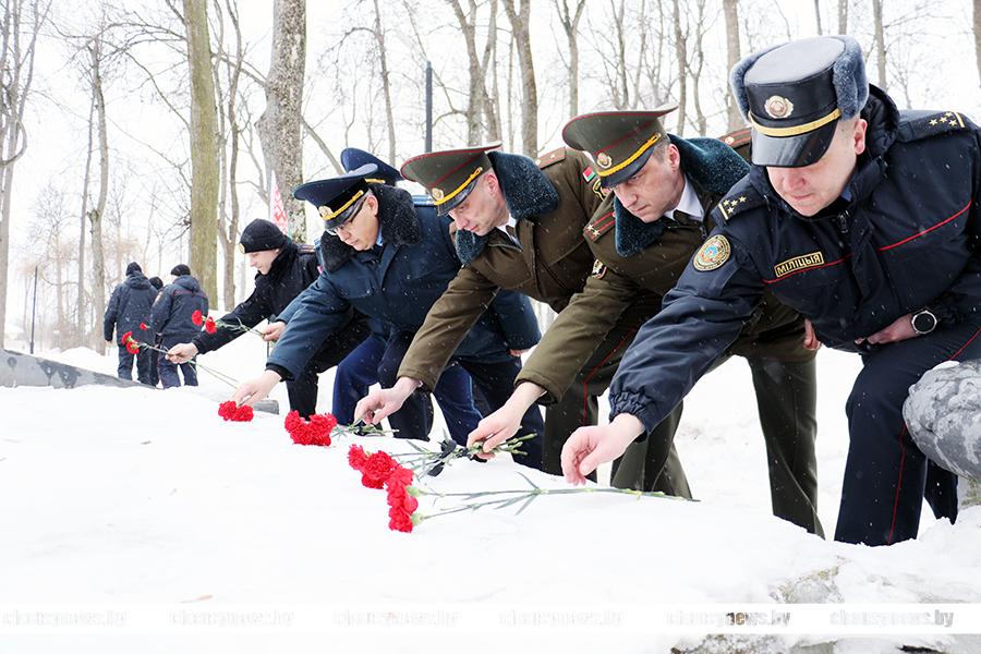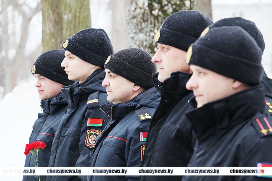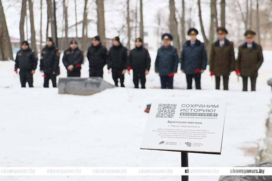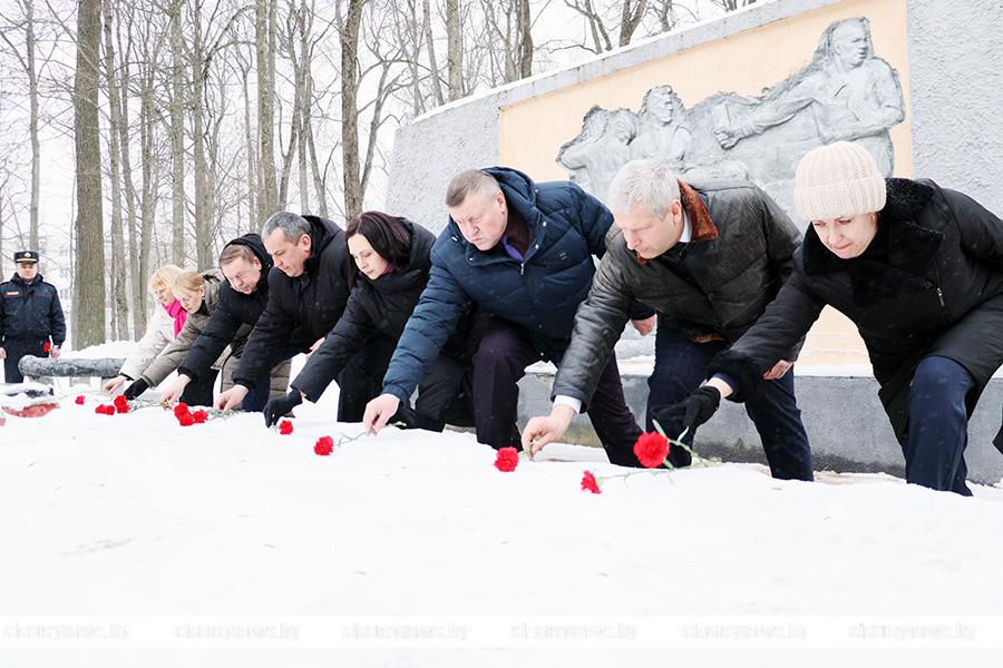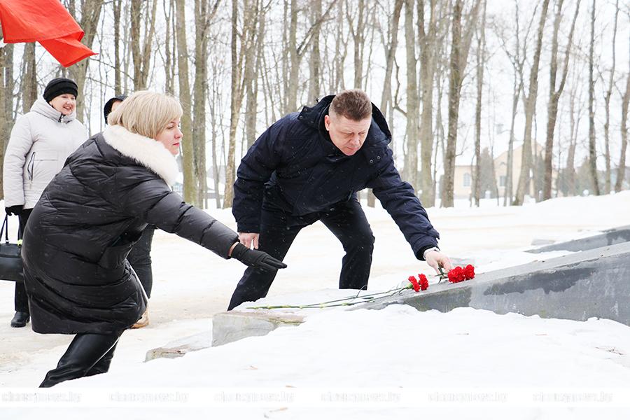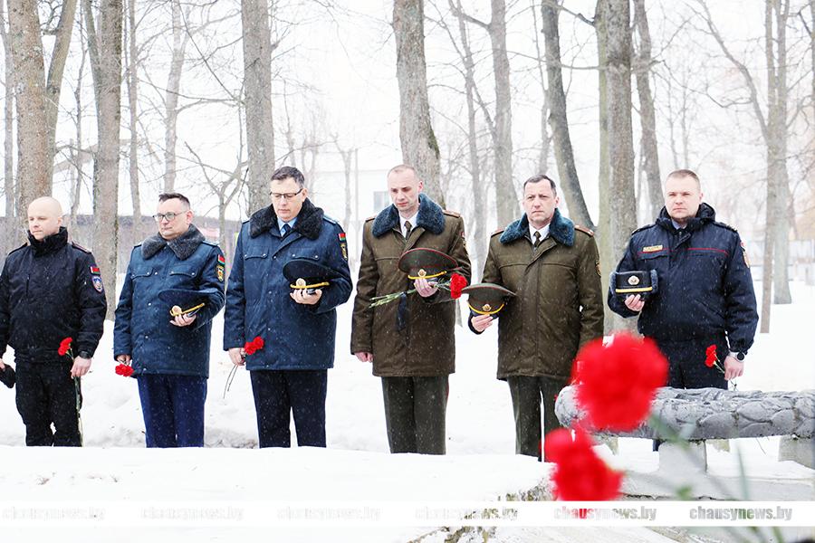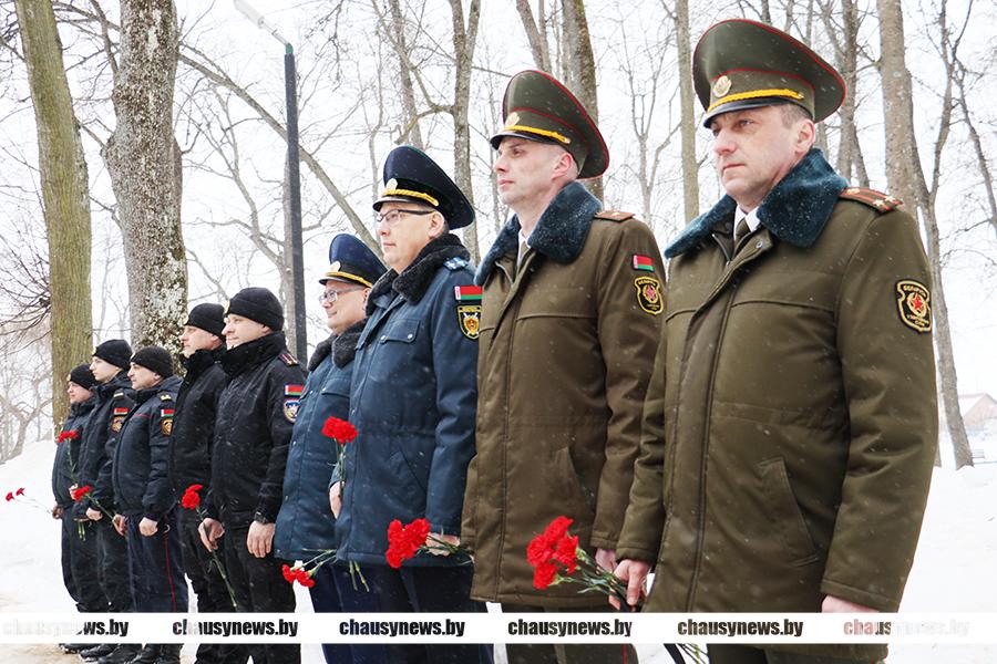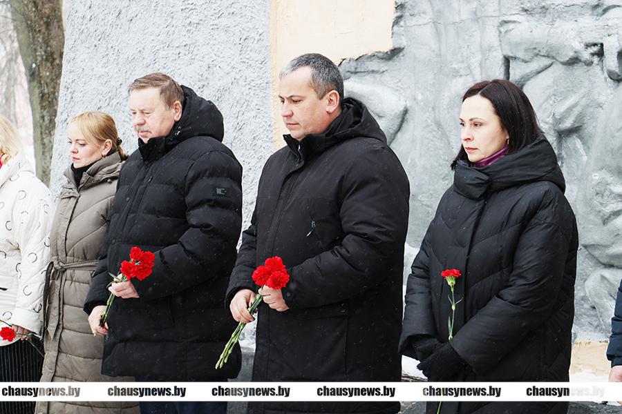 Во главе с председателем Чаусского райисполкома Сергеем Дорожкиным, его заместители, члены исполкома, общественные и политические лидеры, молодежь возложили цветы к братскому захоронению.