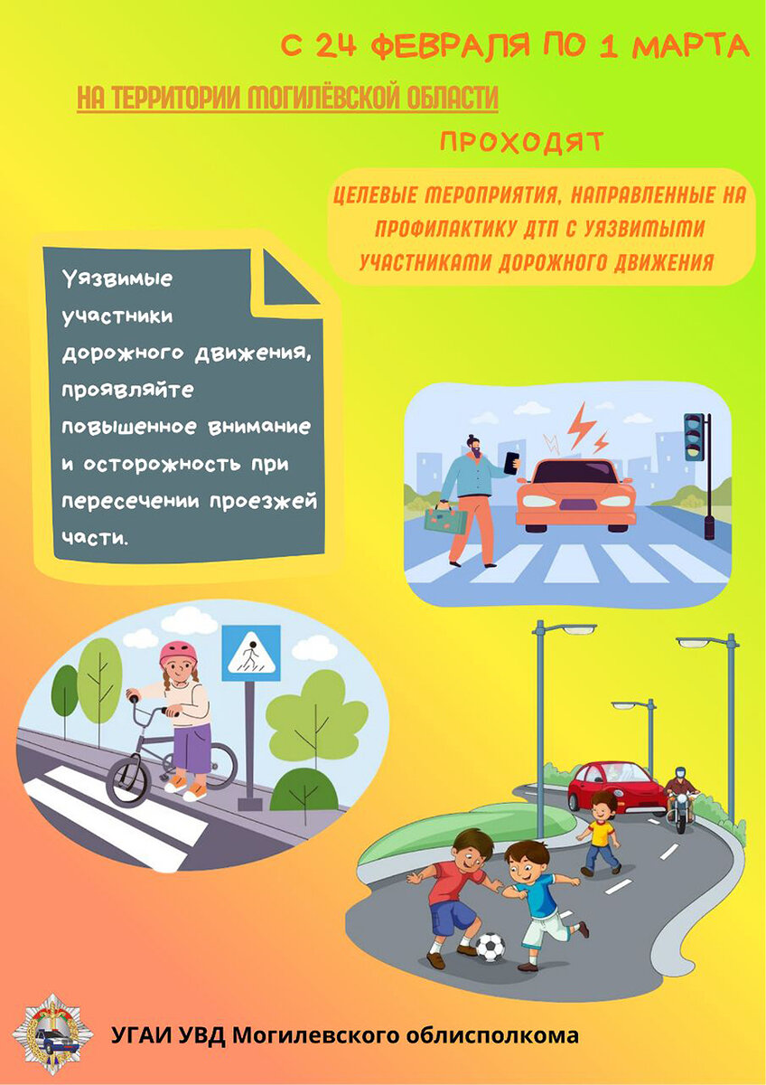 С 24 февраля по 1 марта Госавтоинспекция проводит целевые мероприятия, направленные на профилактику совершения дорожно-транспортных происшествий с уязвимыми участниками дорожного движения.