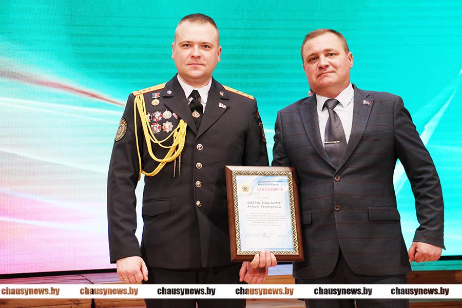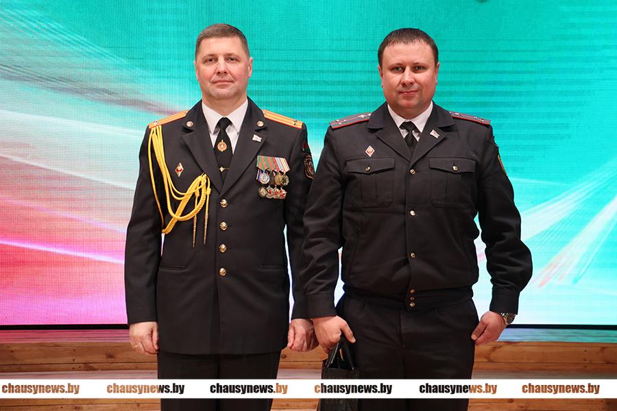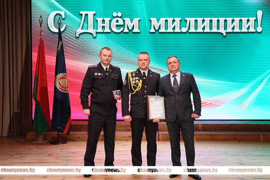 Прозвучали на празднике и особые слова благодарности ветеранам органов внутренних дел – людям, беззаветно служившим Отечеству. Дмитрий Рыбчинский вручил награды. Благодарность начальника Чаусского РОВД объявлена подполковнику милиции в запасе Сергею Лакизо и майору милиции в отставке Олегу Соловьёву.
