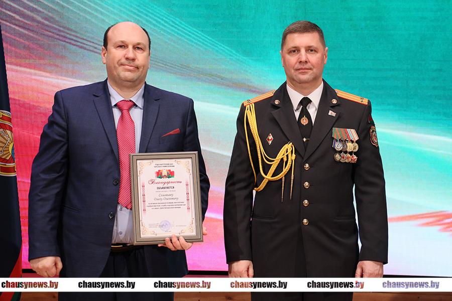 Сергей Анатольевич открыл церемонию награждения. Почетной грамотой райисполкома награжден начальник отделения охраны правопорядка и профилактики Александр Басаримов. Благодарность Чаусского райисполкома объявлена старшему инспектору профилактики отделения охраны правопорядка и профилактики Елене Шанталосовой.
