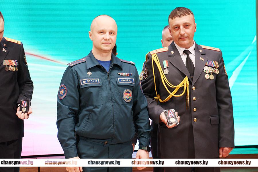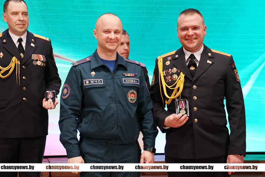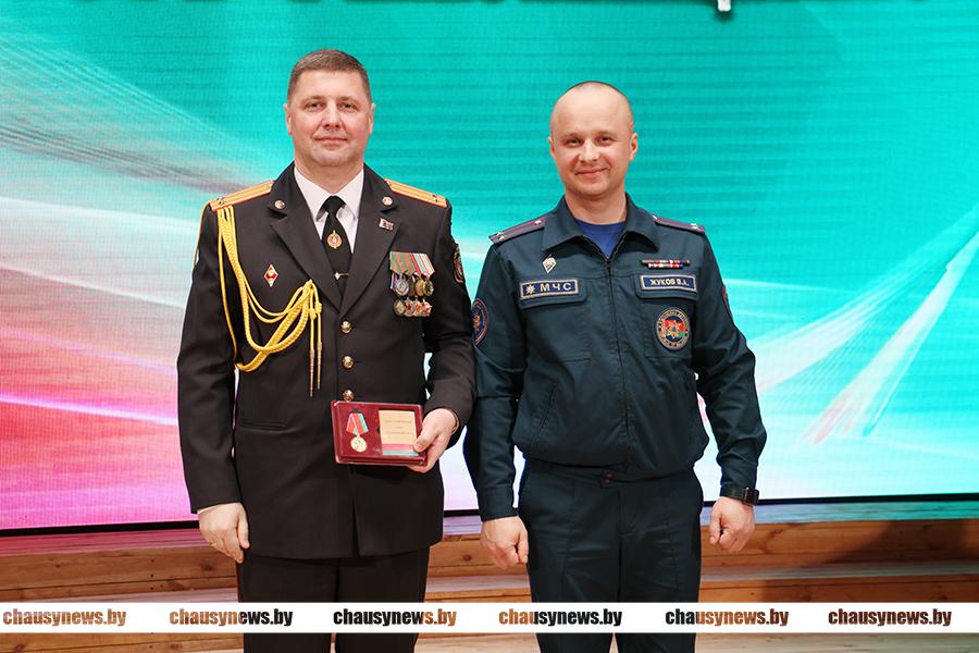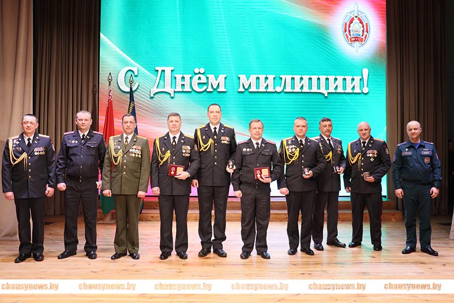 Продолжил награждение Валентин Жуков. Юбилейной медалью «За взаимодействие» награждены начальник РОВД Дмитрий Рыбчинский и начальник уголовно-исполнительной инспекции Александр Гавронский. Юбилейной медалью «100 лет Советской пожарной охране» награжден Николай Черноруцкий. Юбилейной медалью «20 лет органам и подразделениям по чрезвычайным ситуациям Республики Беларусь» награждены заместитель начальника РОВД Сергей Волков, начальник Чаусского отделения Департамента охраны Александр Астапов, начальник Чаусского ОГАИ Николай Игнатенко, старший госавтоинспектор ОГАИ Александр Полевков.